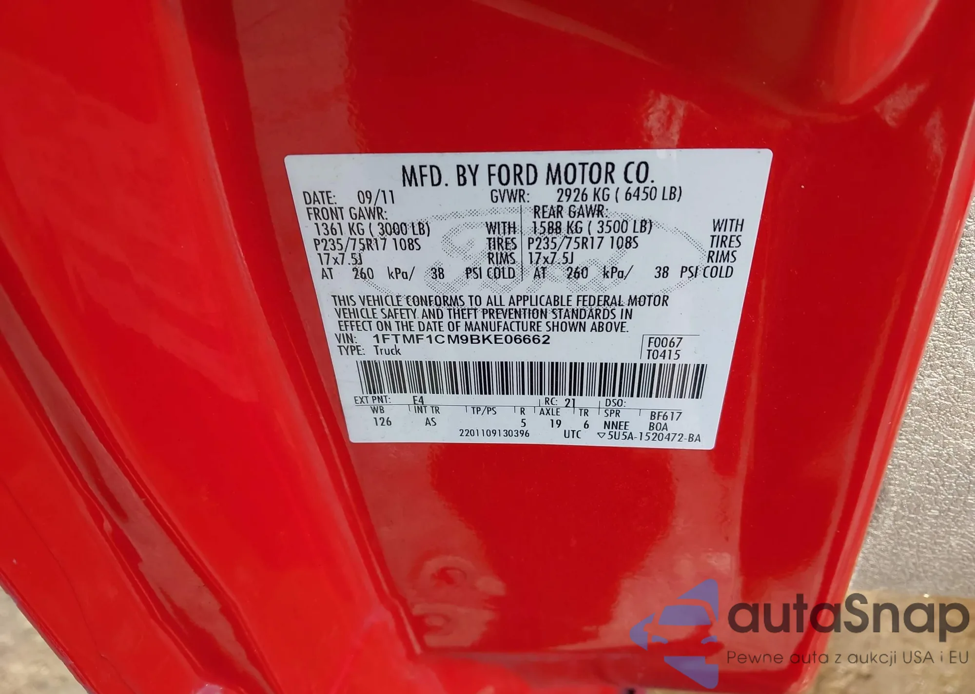 Samochód Ford F-150 2011 (VIN 1FTMF1CM9BKE06662) sprzedaje go niezweryfikowany sprzedawca. Zalecamy raport Carfax i potwierdzenie możliwości rejestracji pojazdu przed zakupem.