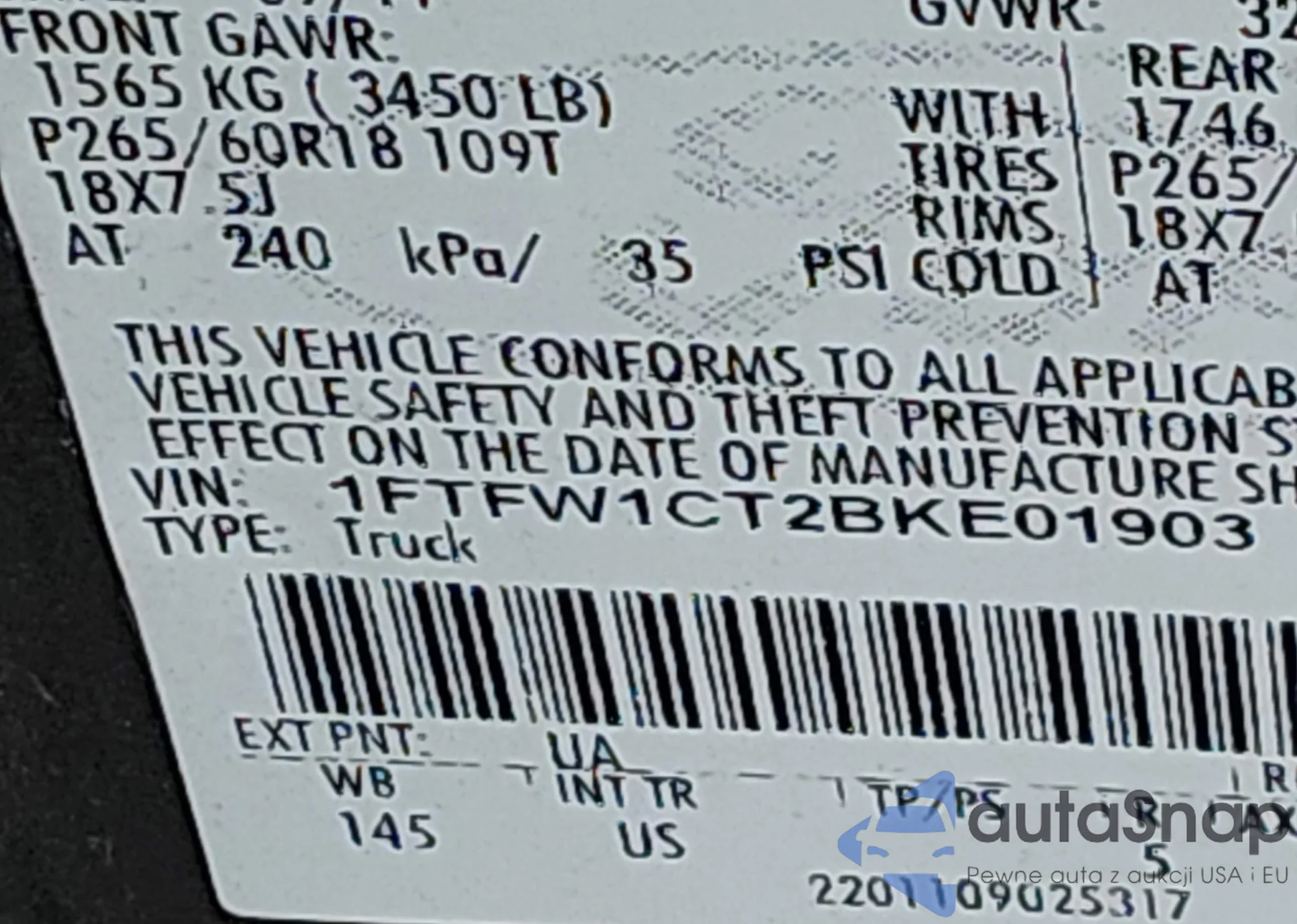 VIN: 1FTFW1CT2BKE01903