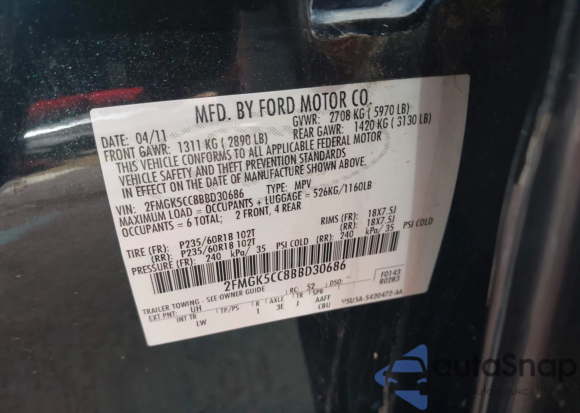 • VIN: 2FMGK5CC8BBD30686