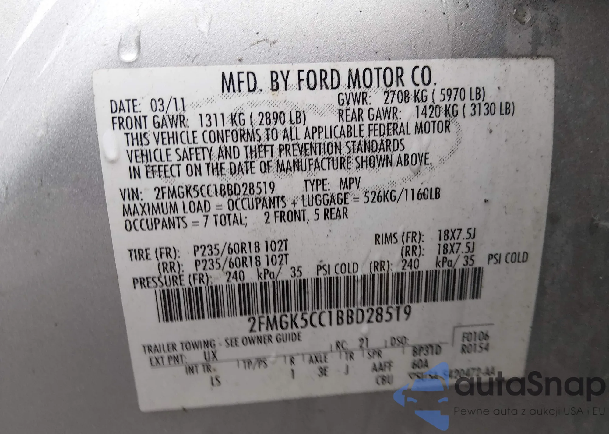 • VIN: 2FMGK5CC1BBD28519