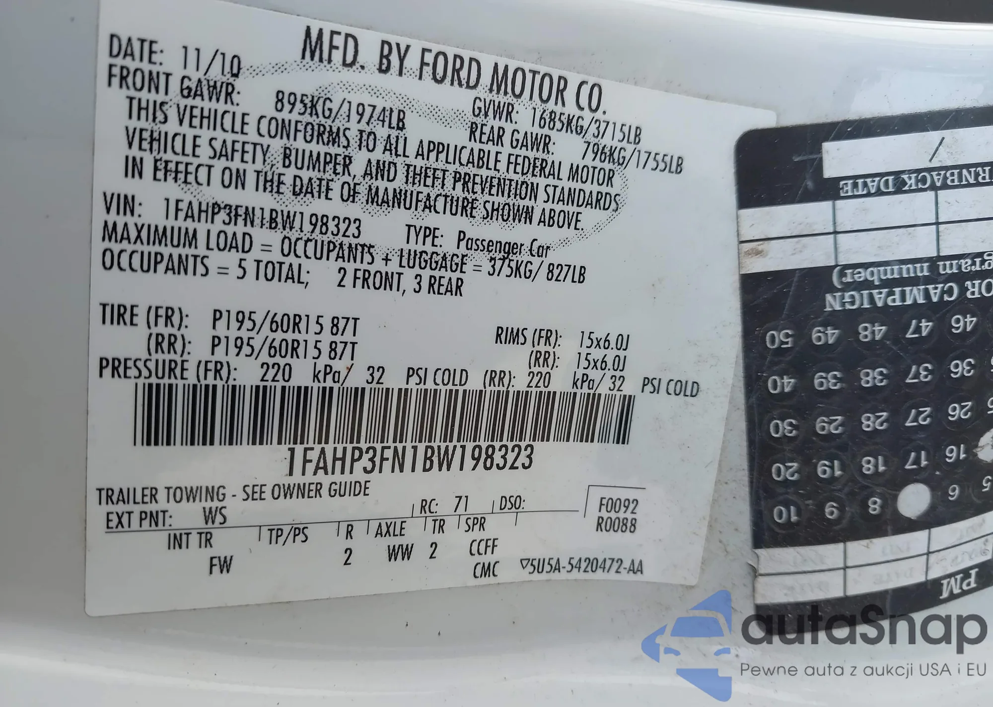 VIN: 1FAHP3FN1BW198323