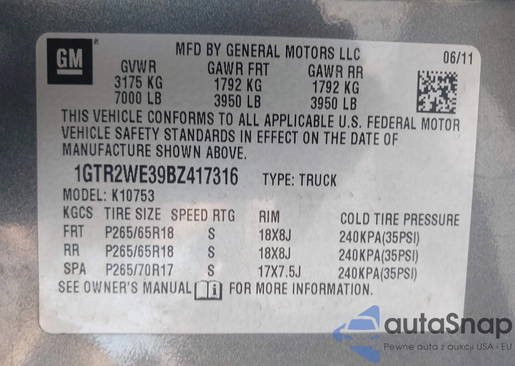 VIN: 1GTR2WE39BZ417316
