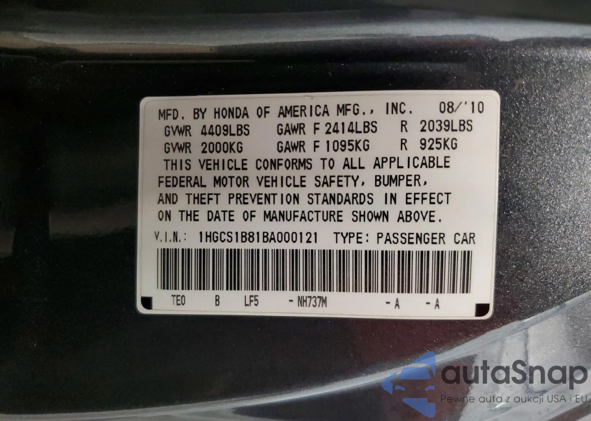 • VIN: 1HGCS1B81BA000121