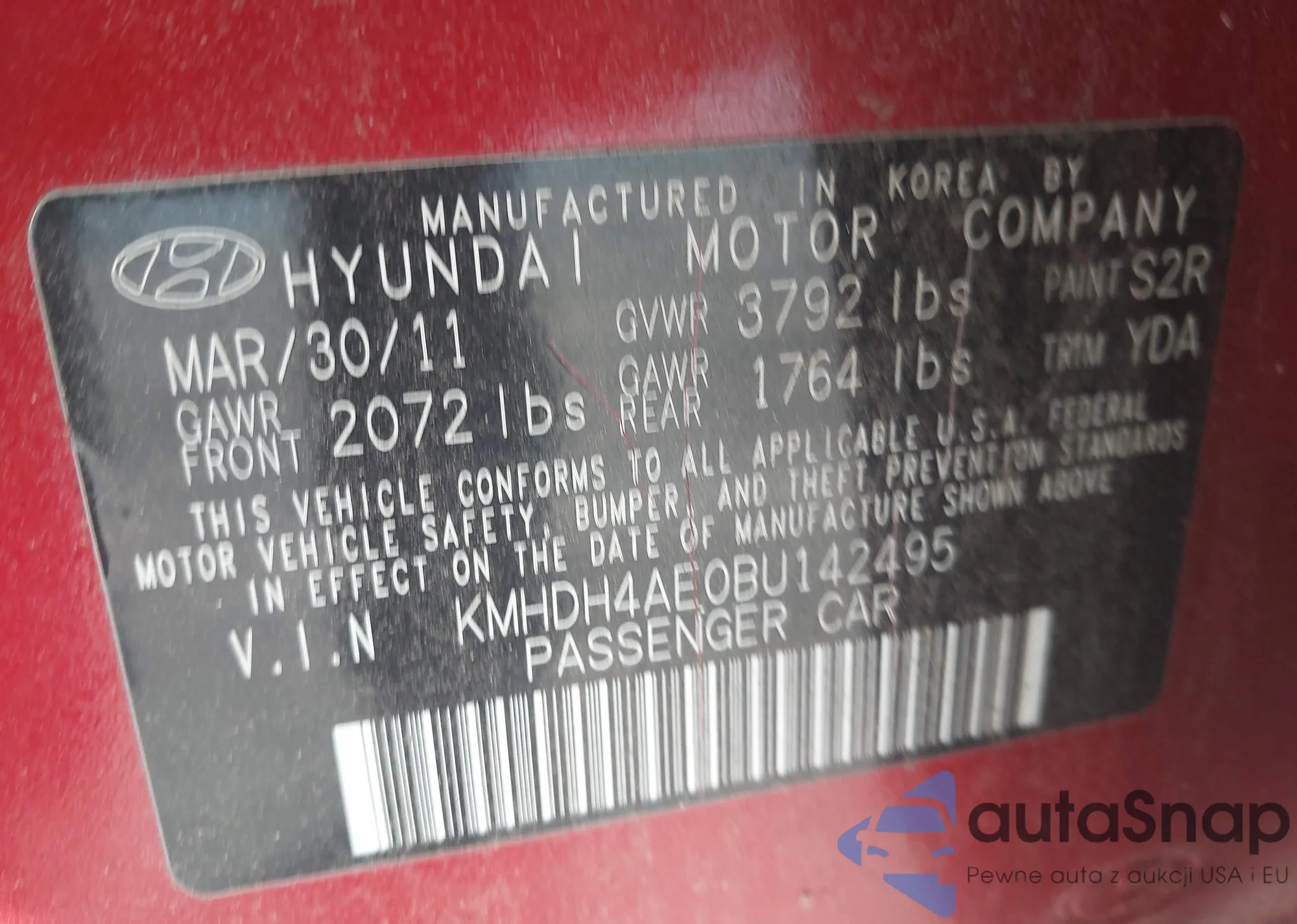 VIN: KMHDH4AE0BU142495