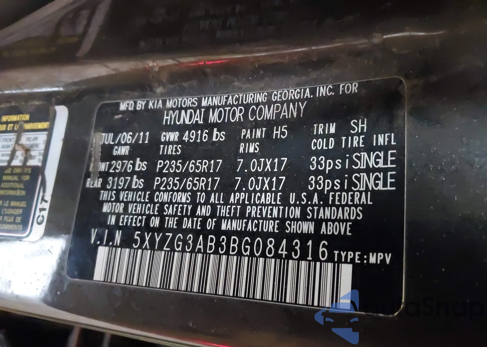 VIN: 5XYZG3AB3BG084316