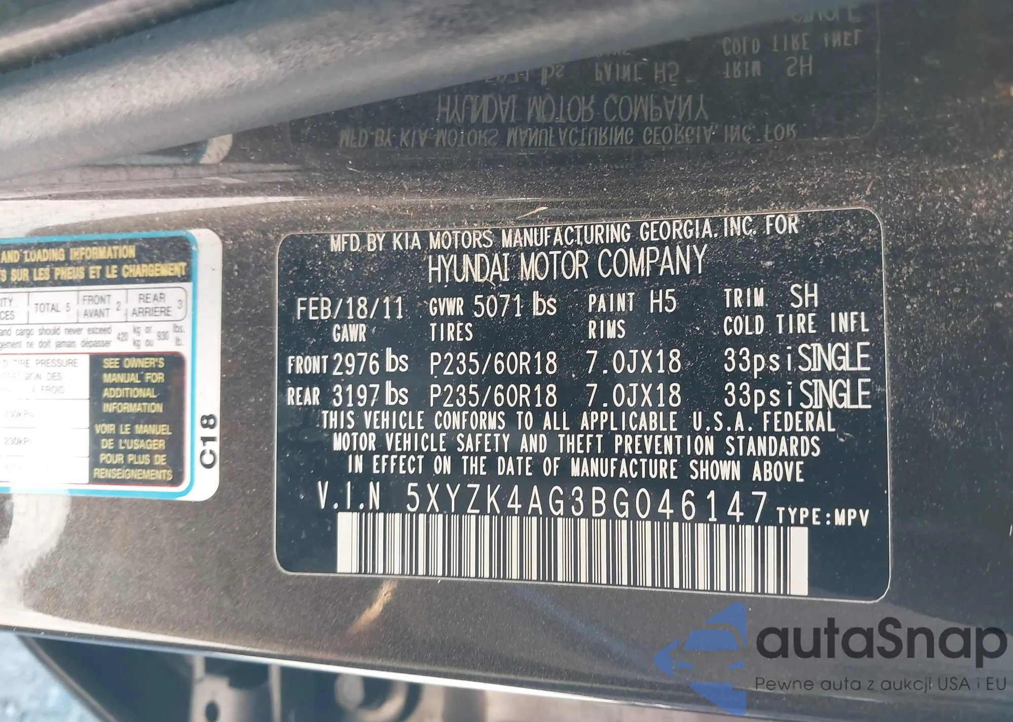 Samochód Hyundai Santa Fe 2011 (VIN 5XYZK4AG3BG046147) sprzedaje go niezweryfikowany sprzedawca. Zalecamy raport Carfax i potwierdzenie możliwości rejestracji pojazdu przed zakupem.