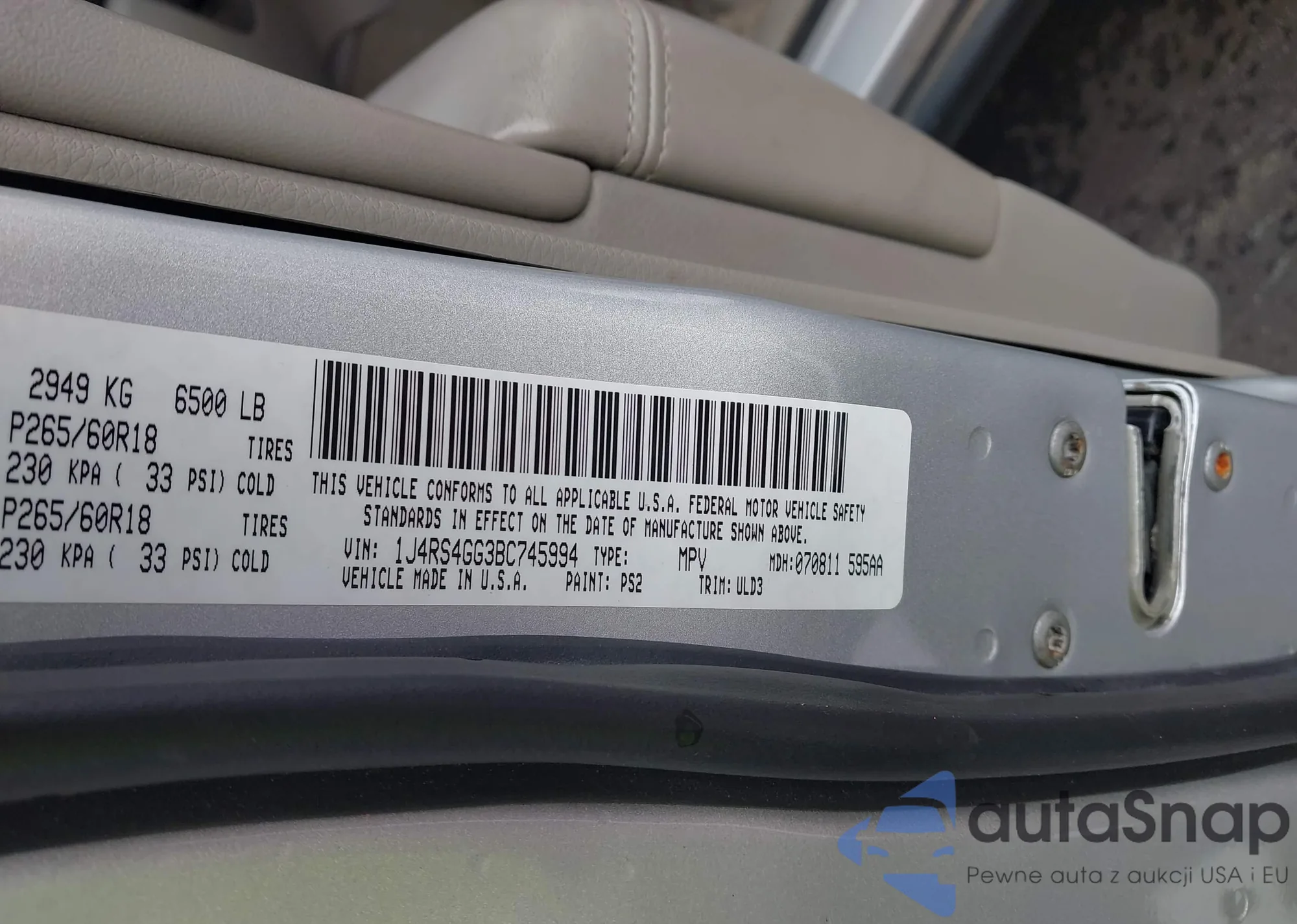 • VIN: 1J4RS4GG3BC745994