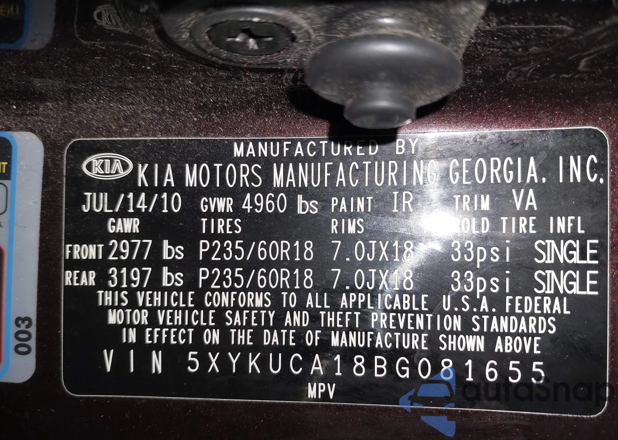 • VIN: 5XYKUCA18BG081655