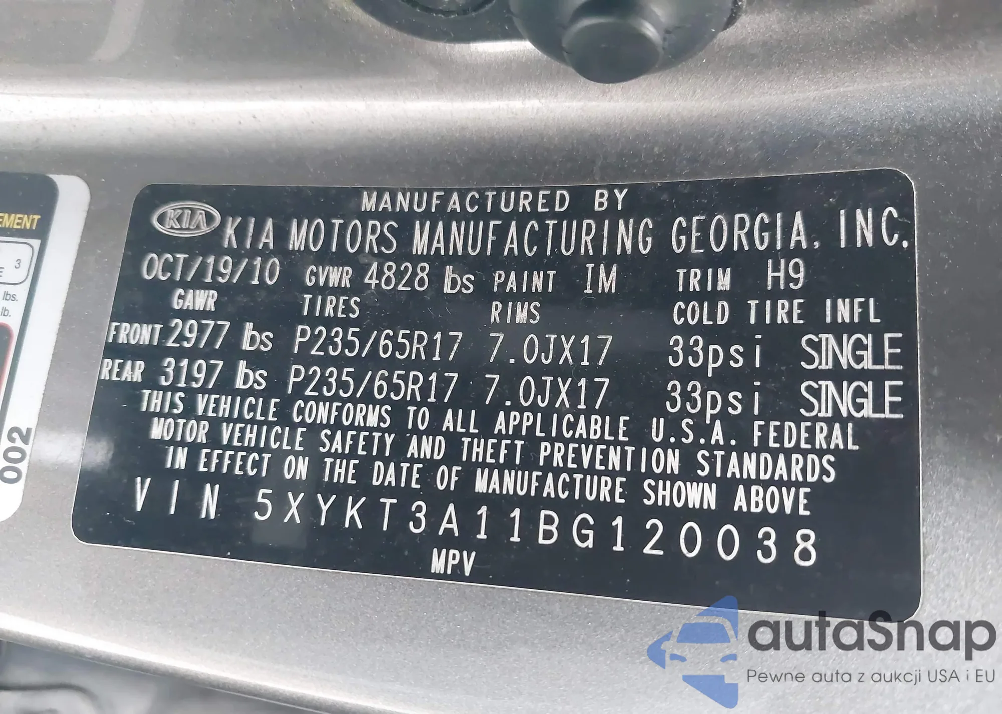 Samochód Kia Sorento 2011 (VIN 5XYKT3A11BG120038) nie był wcześniej licytowany. Dokumenty są czyste, przebieg odpowiada lub jest niższy niż średnia rynku. Sprzedaje go firma ubezpieczeniowa – polecamy zakup. Dostawa do portu zajmie ok. 6–8 tygodni.