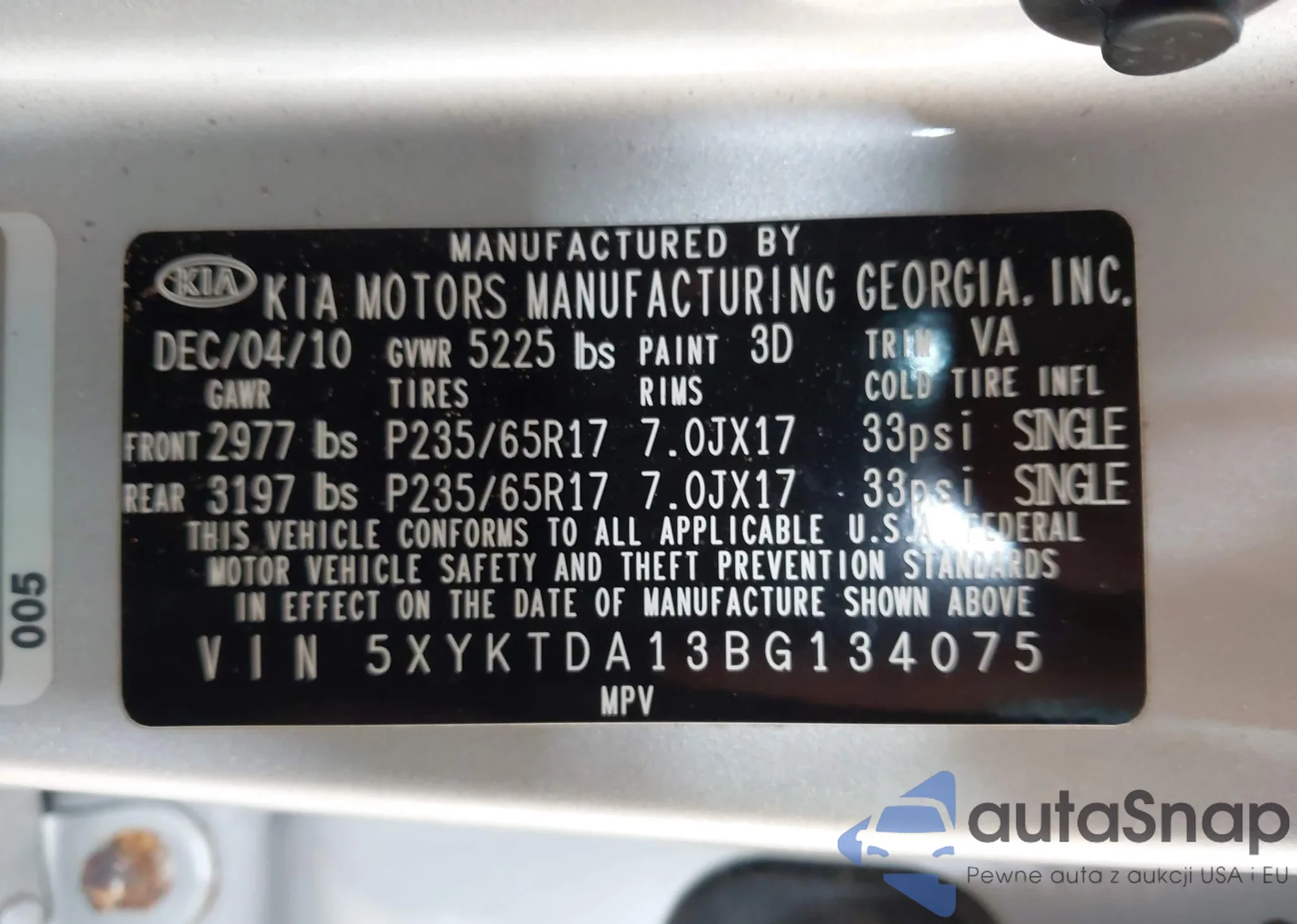 Samochód Kia Sorento 2011 (VIN 5XYKTDA13BG134075) sprzedaje go niezweryfikowany sprzedawca. Zalecamy raport Carfax i potwierdzenie możliwości rejestracji pojazdu przed zakupem.