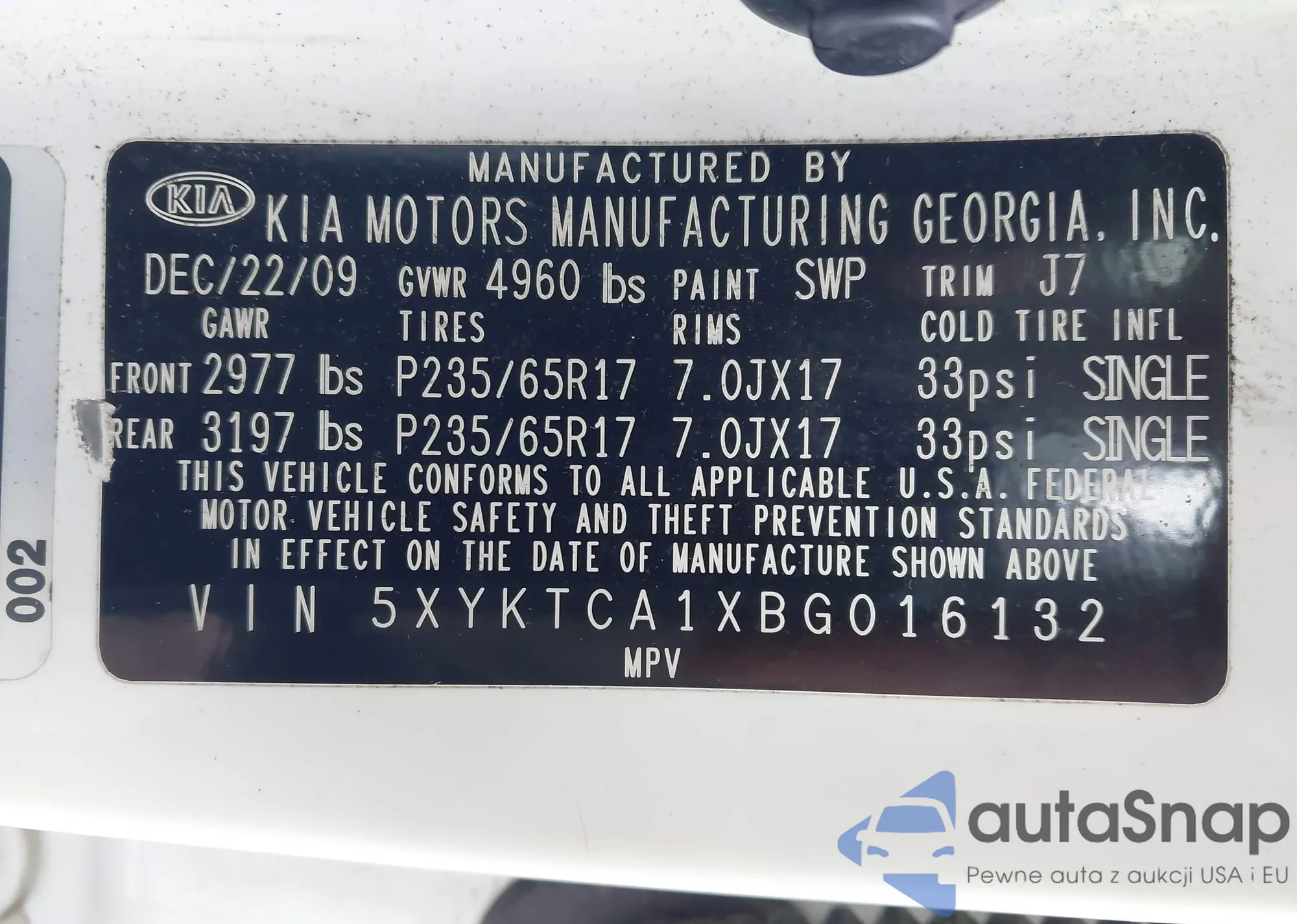 Samochód Kia Sorento 2011 (VIN 5XYKTCA1XBG016132) sprzedaje go niezweryfikowany sprzedawca. Zalecamy raport Carfax i potwierdzenie możliwości rejestracji pojazdu przed zakupem.