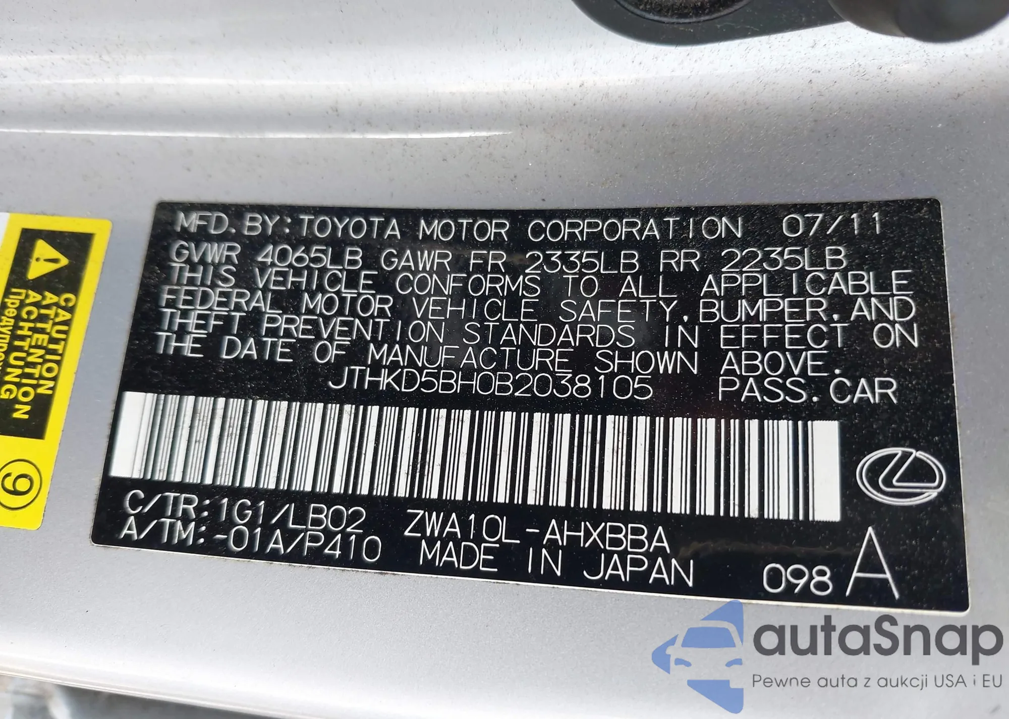 Samochód Lexus CT 2011 (VIN JTHKD5BH0B2038105) sprzedaje go niezweryfikowany sprzedawca. Zalecamy raport Carfax i potwierdzenie możliwości rejestracji pojazdu przed zakupem.