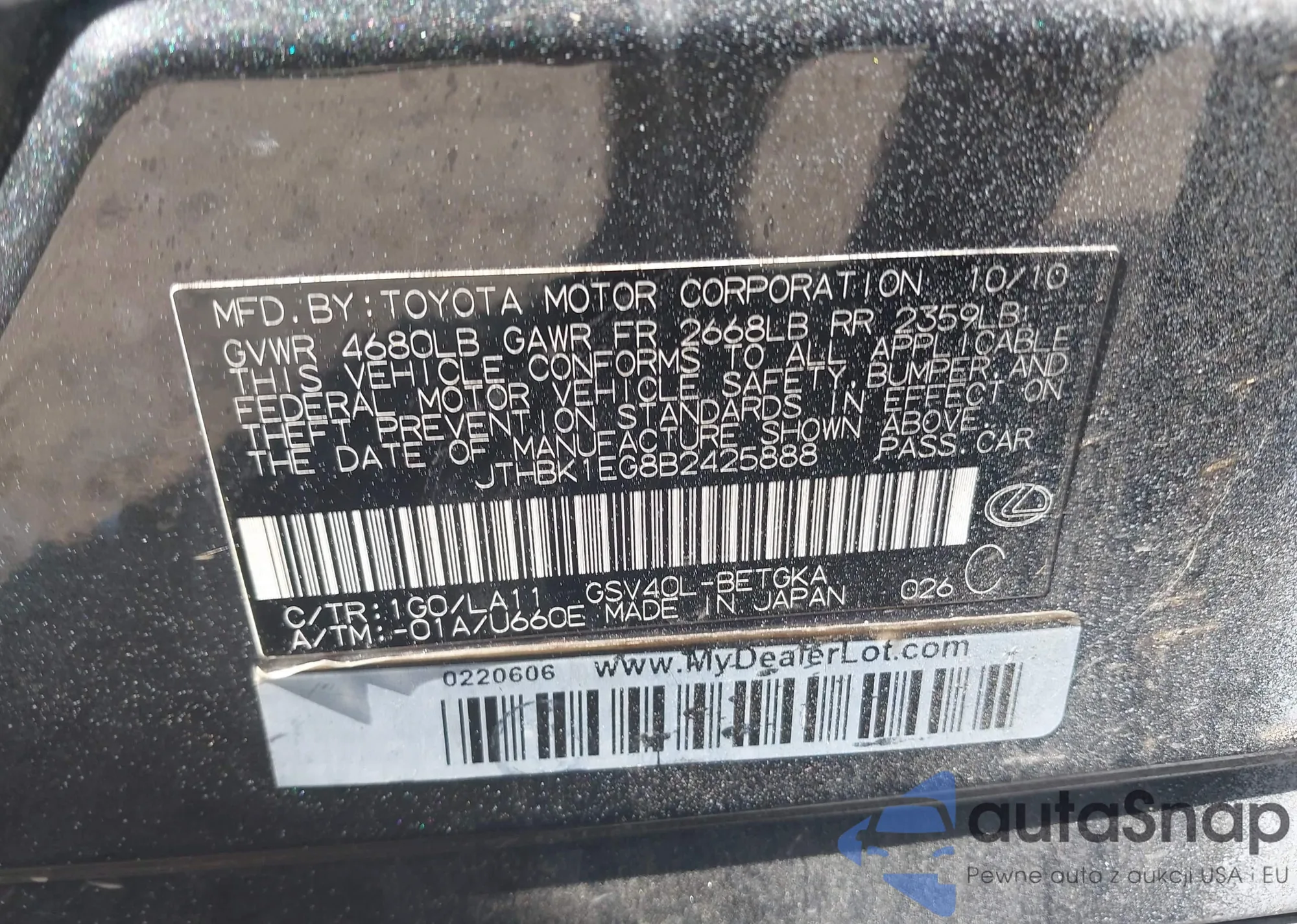 VIN: JTHBK1EG8B2425888