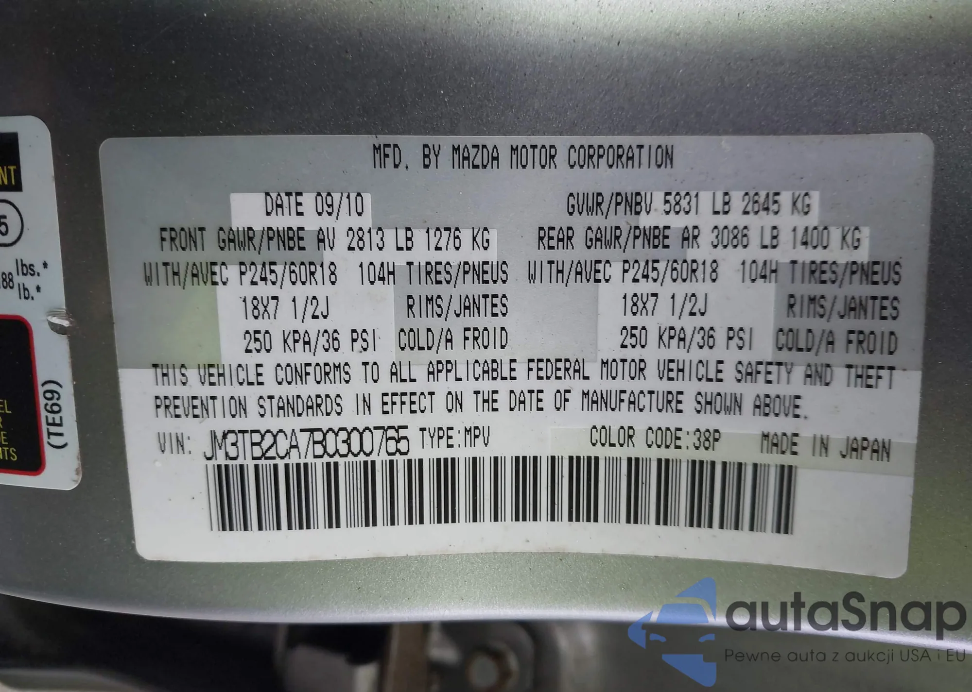VIN: JM3TB2CA7B0300765