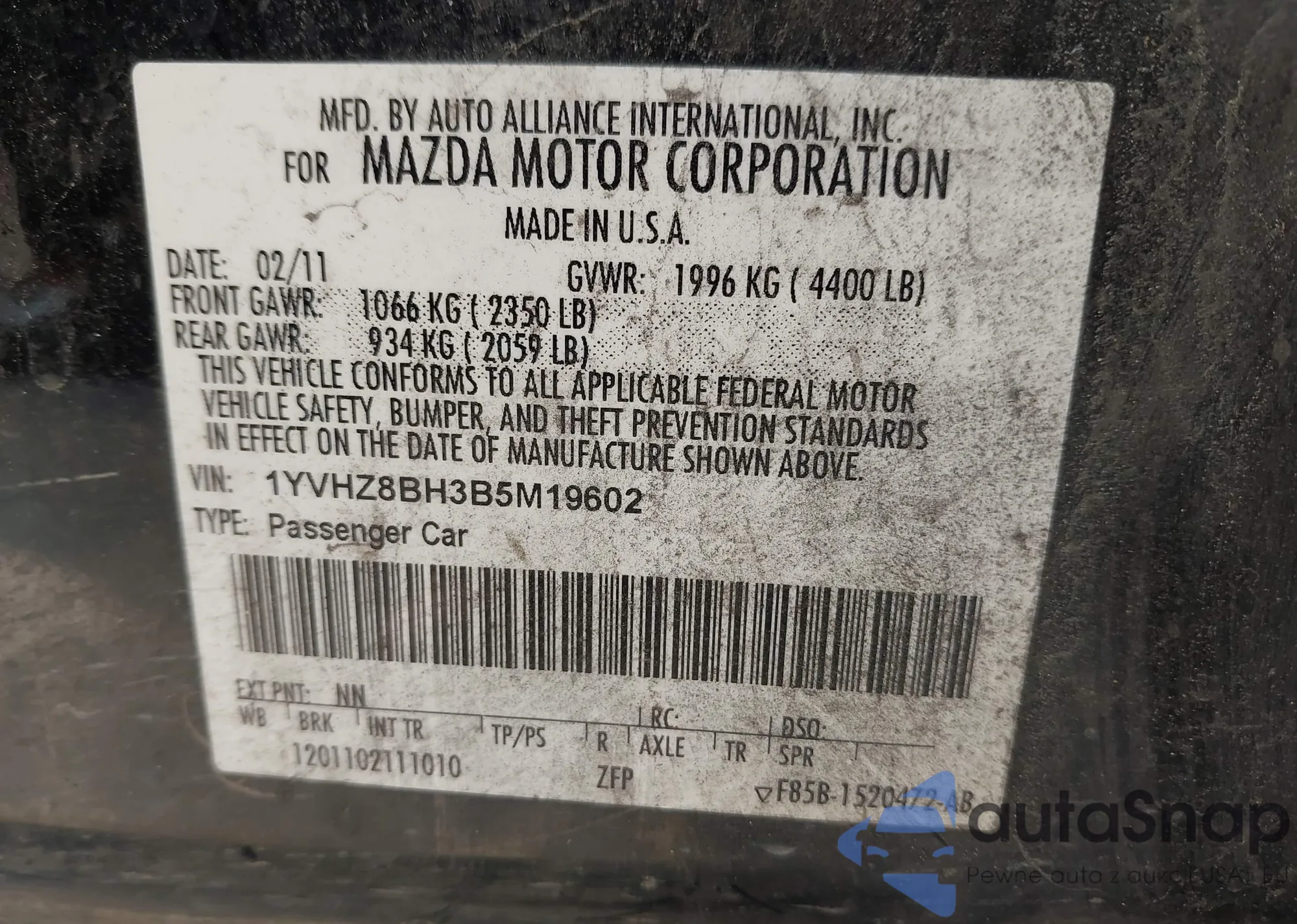 VIN: 1YVHZ8BH3B5M19602