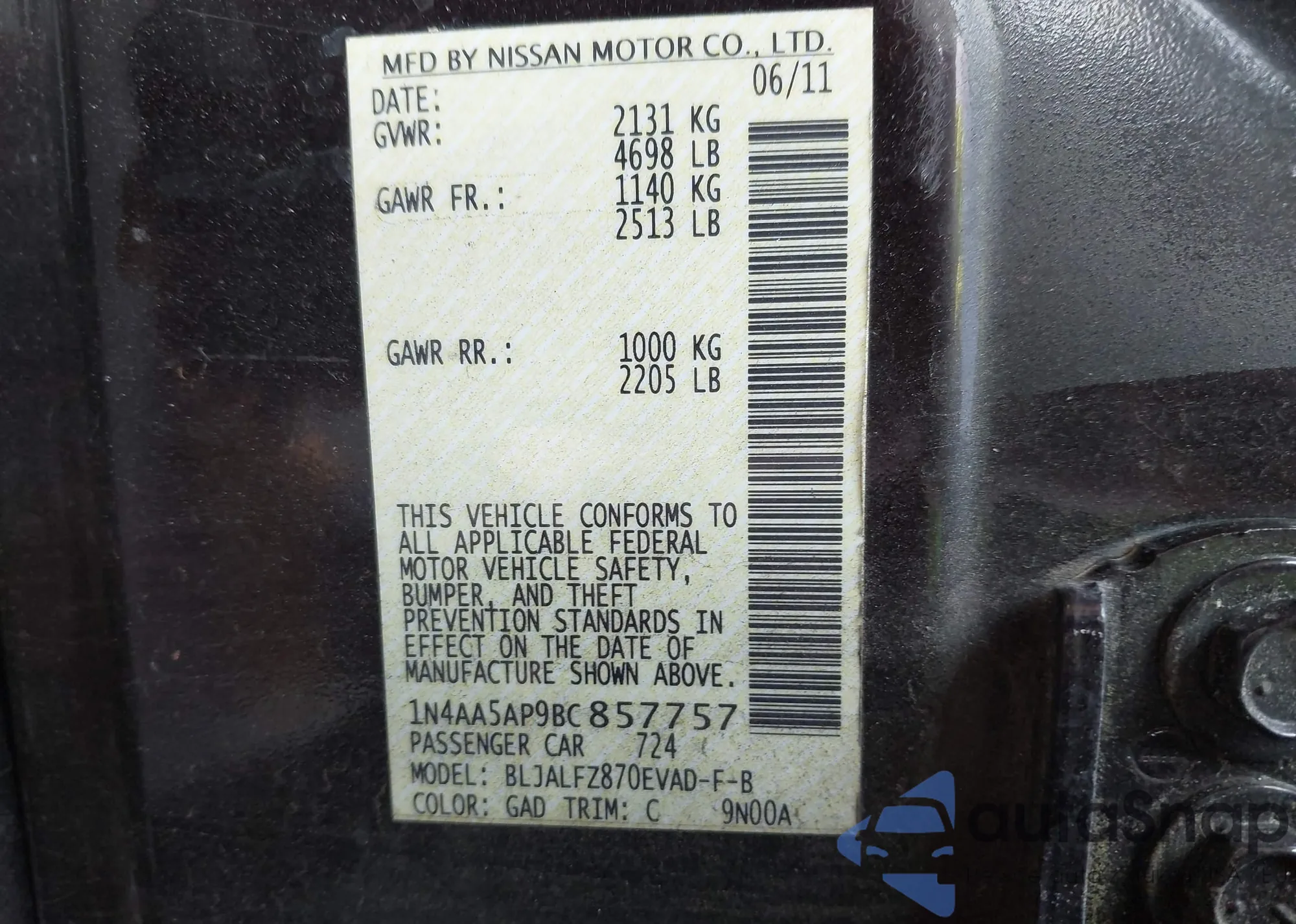 Samochód Nissan Maxima 2011 (VIN 1N4AA5AP9BC857757) był już licytowany 1 razy i/lub sprzedaje go niezweryfikowany sprzedawca. Zalecamy raport Carfax i potwierdzenie możliwości rejestracji pojazdu przed zakupem.