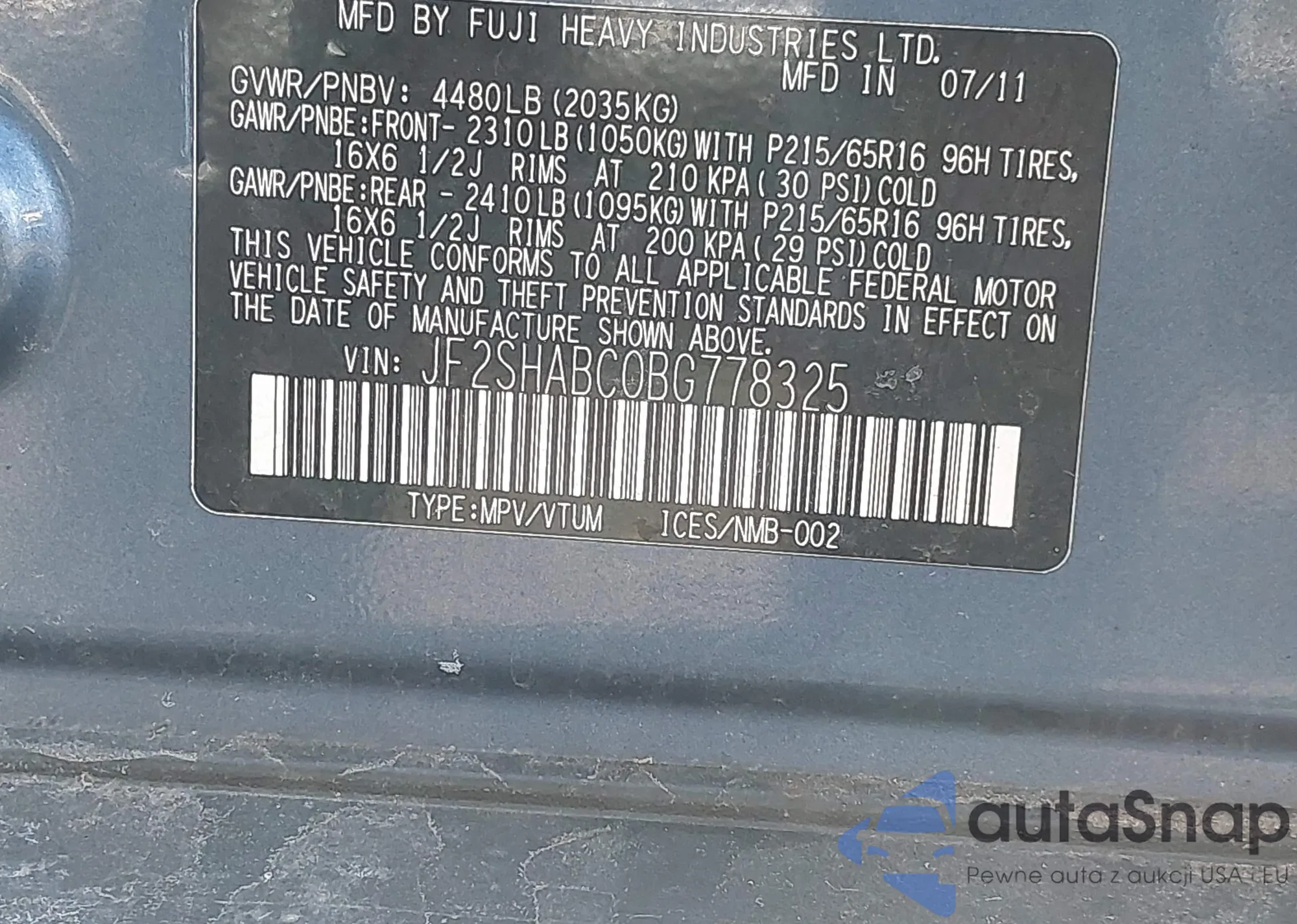 VIN: JF2SHABC0BG778325