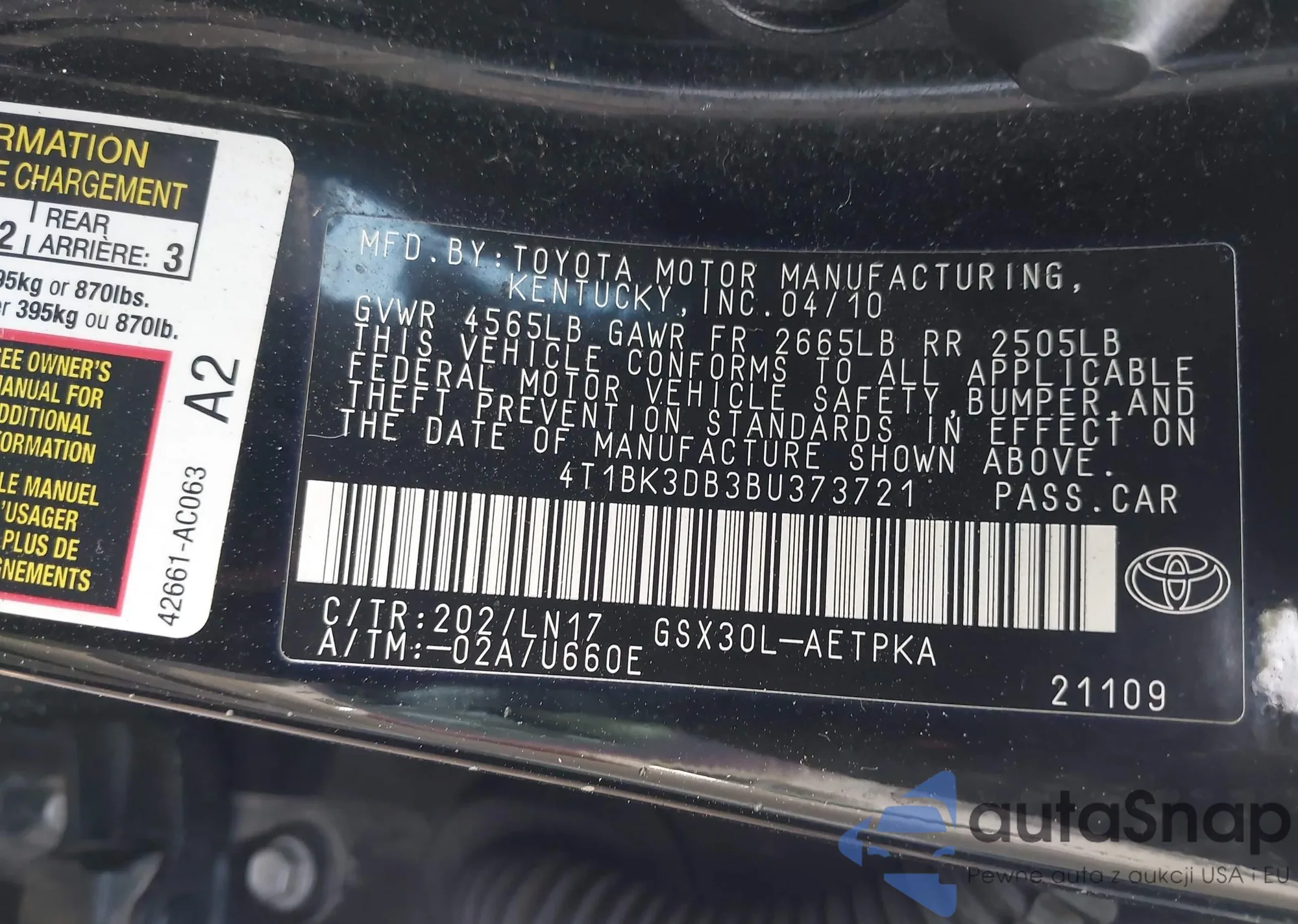 4T1BK3DB3BU373721 IAAI