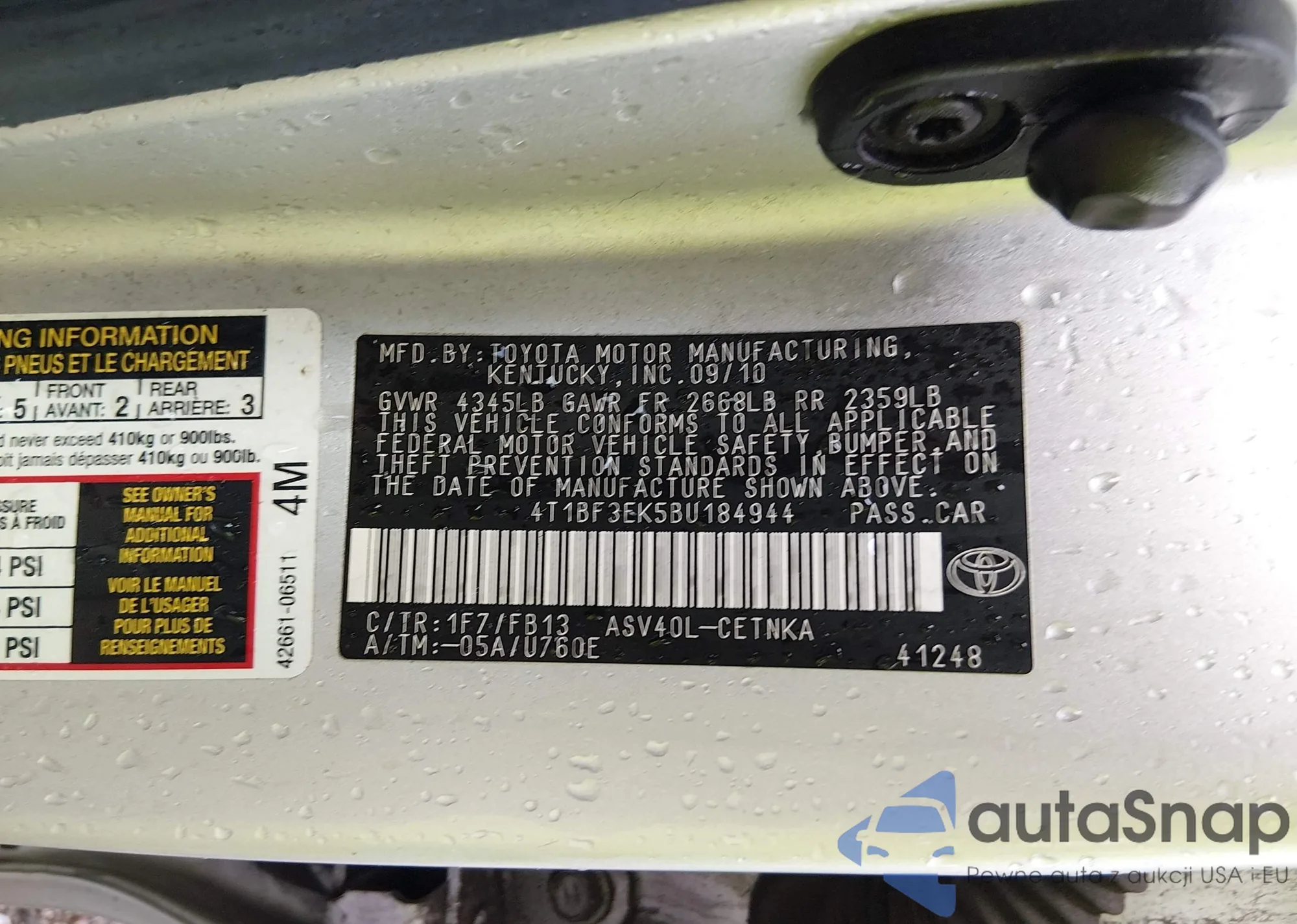 VIN: 4T1BF3EK5BU184944