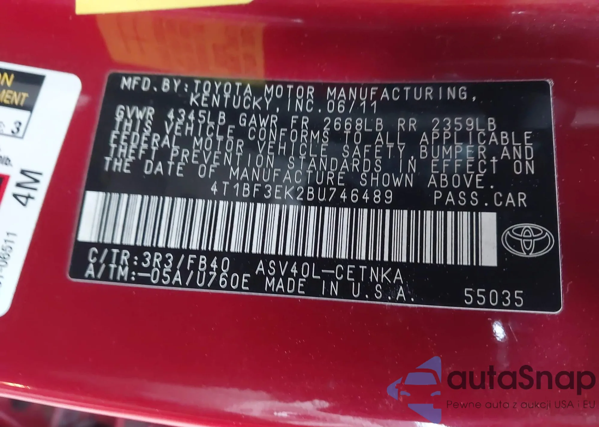 Samochód Toyota Camry 2011 (VIN 4T1BF3EK2BU746489) był już licytowany 1 razy i/lub sprzedaje go niezweryfikowany sprzedawca. Zalecamy raport Carfax i potwierdzenie możliwości rejestracji pojazdu przed zakupem.