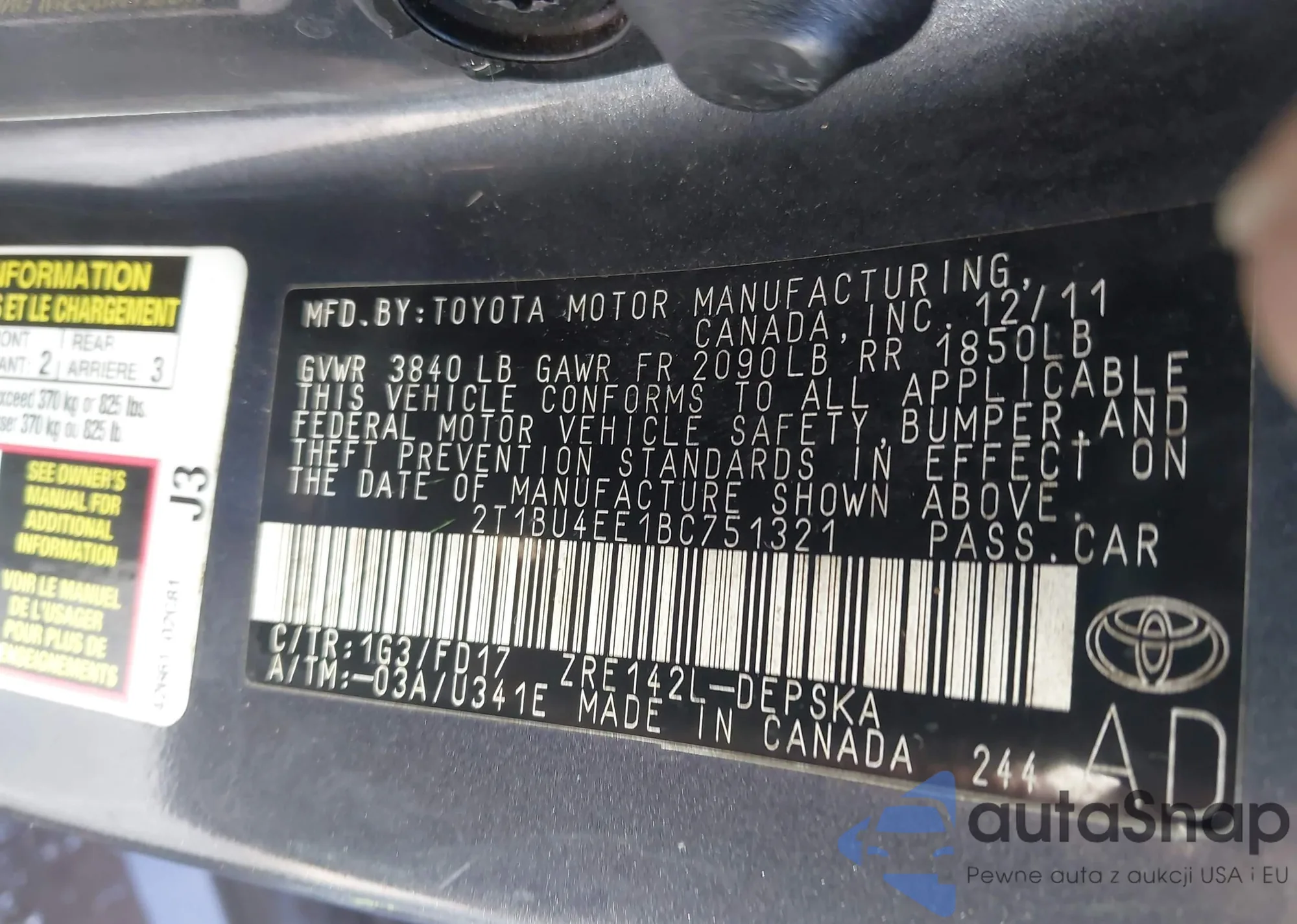 • VIN: 2T1BU4EE1BC751321