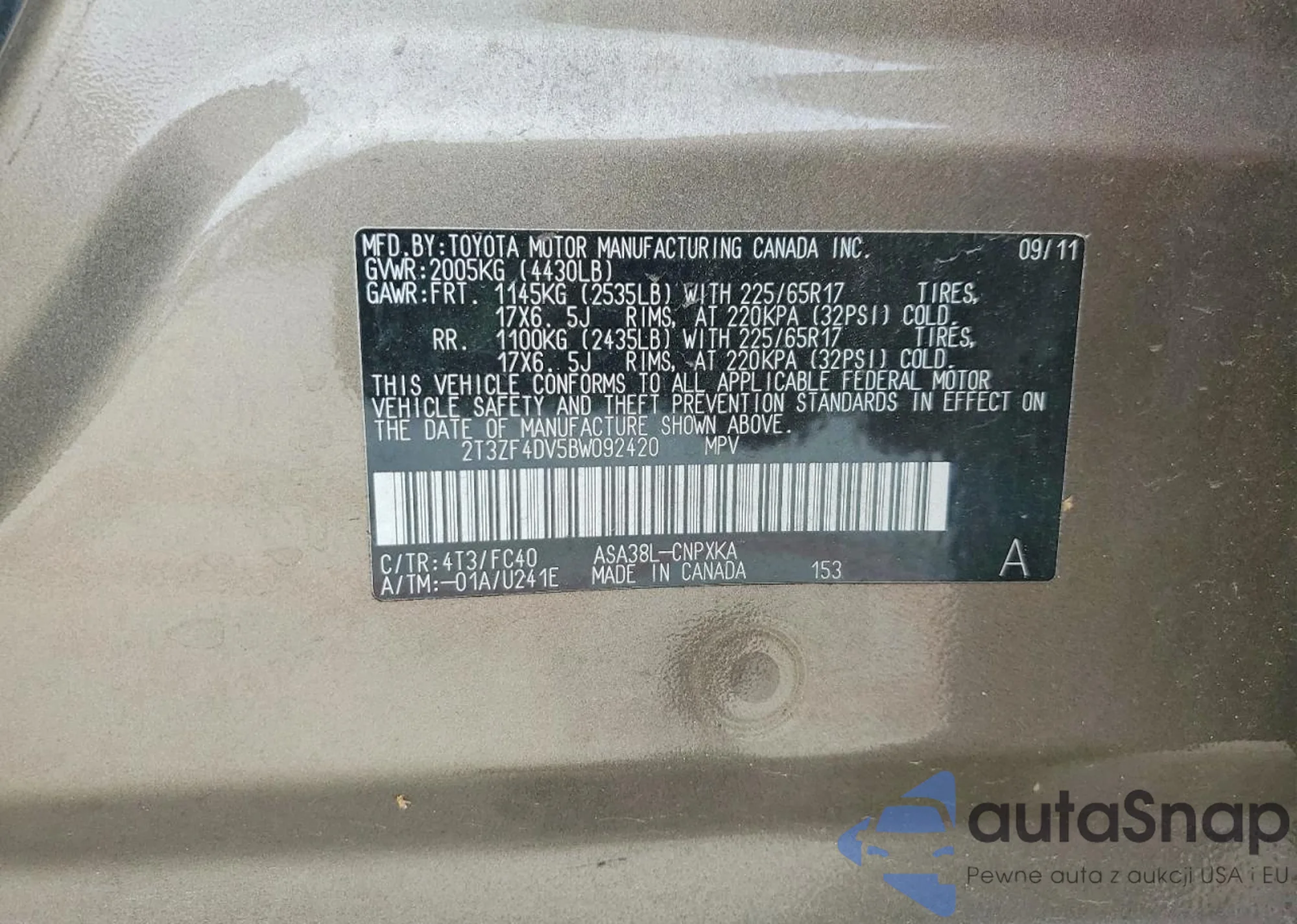 • VIN: 2T3ZF4DV5BW092420
