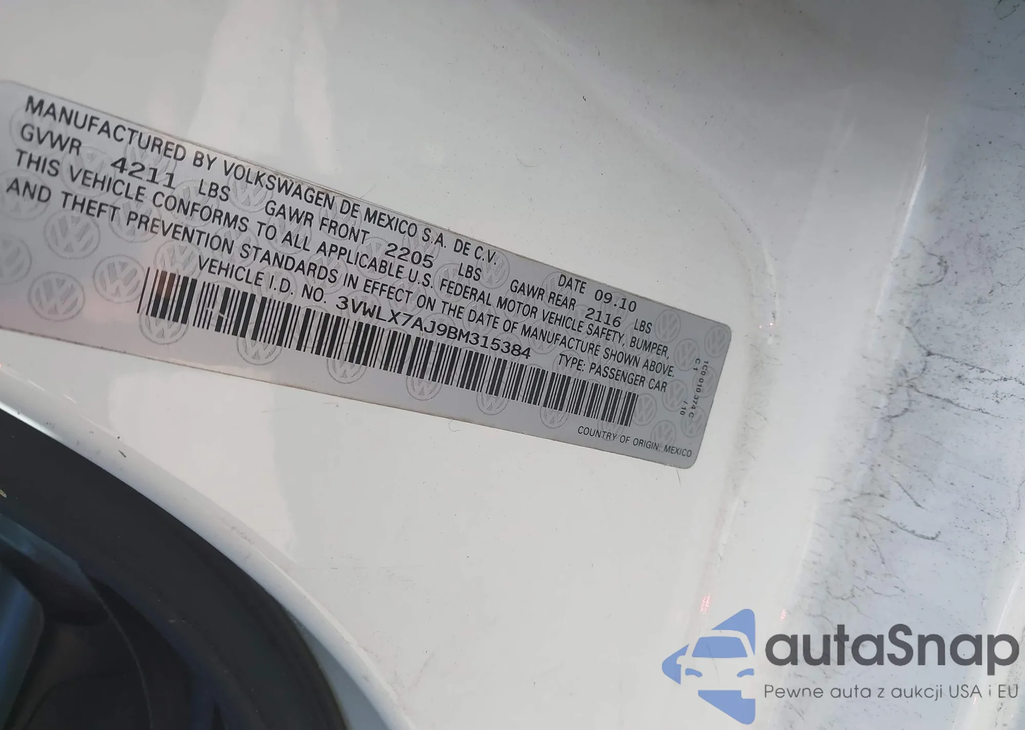 Samochód Volkswagen Jetta 2011 (VIN 3VWLX7AJ9BM315384) nie był wcześniej licytowany. Dokumenty są czyste, przebieg odpowiada lub jest niższy niż średnia rynku. Sprzedaje go firma ubezpieczeniowa – polecamy zakup. Dostawa do portu zajmie ok. 6–8 tygodni.
