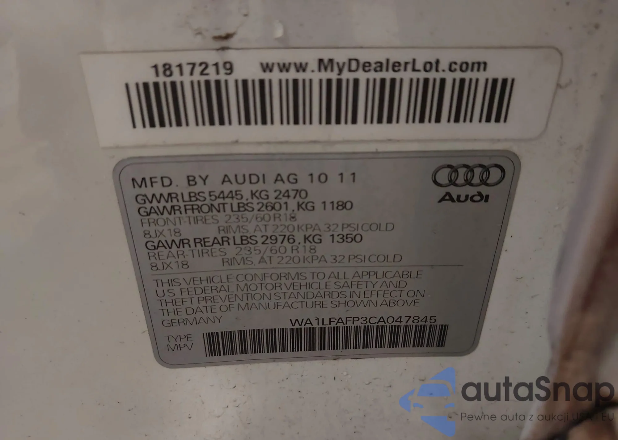 • VIN: WA1LFAFP3CA047845