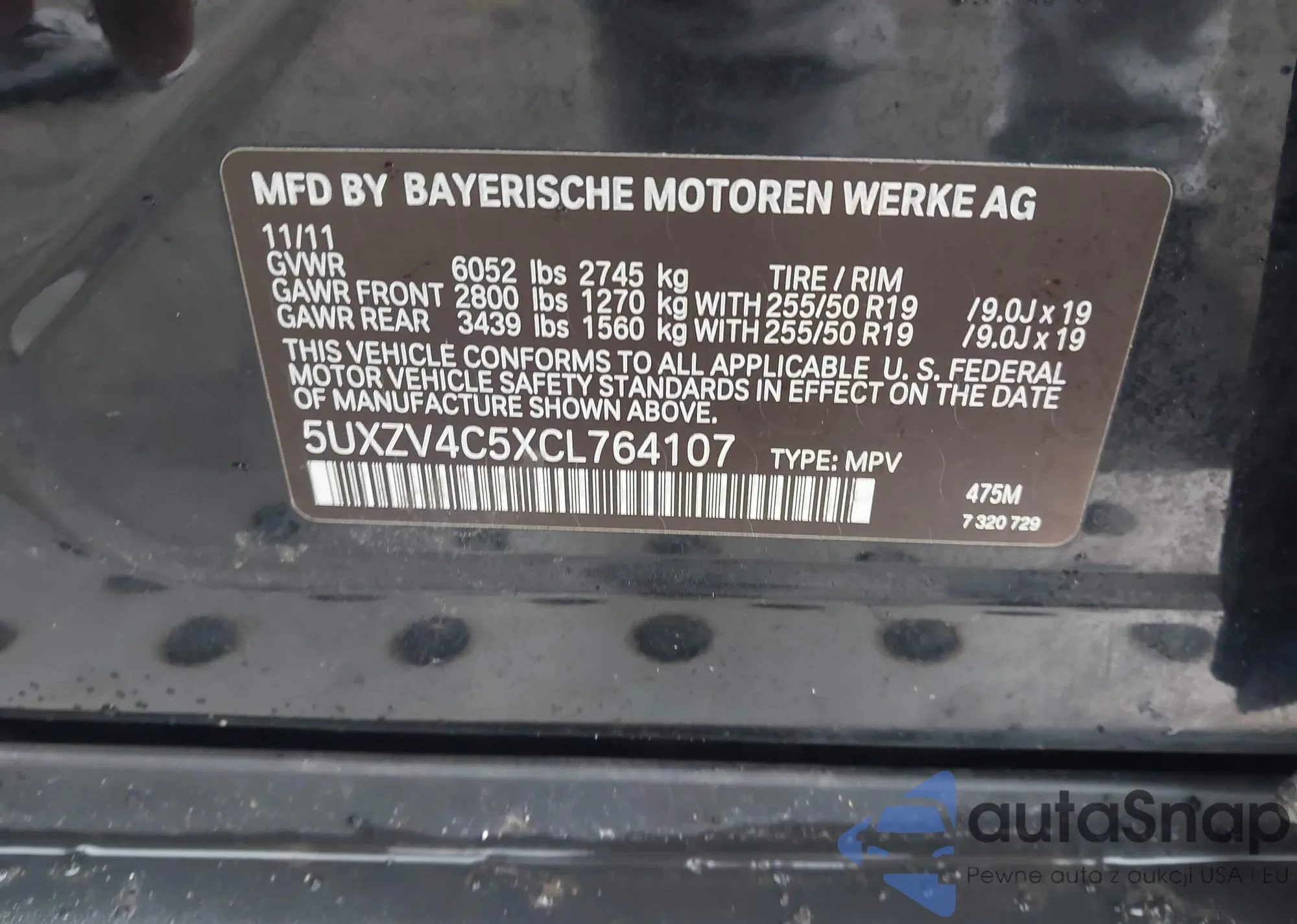 Samochód BMW X5 2012 (VIN 5UXZV4C5XCL764107) był już licytowany 1 razy i/lub sprzedaje go niezweryfikowany sprzedawca. Zalecamy raport Carfax i potwierdzenie możliwości rejestracji pojazdu przed zakupem.