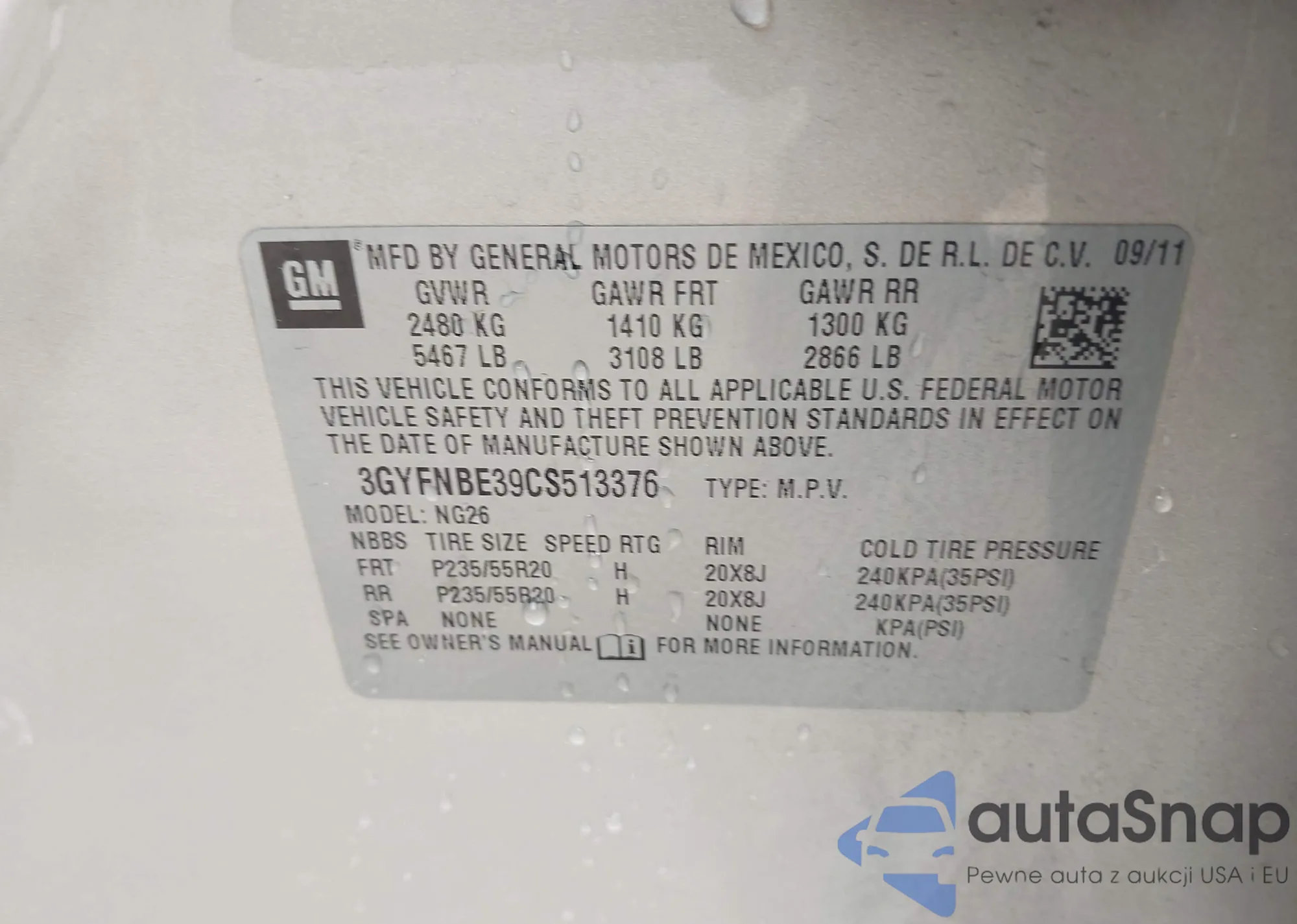 • VIN: 3GYFNBE39CS513376