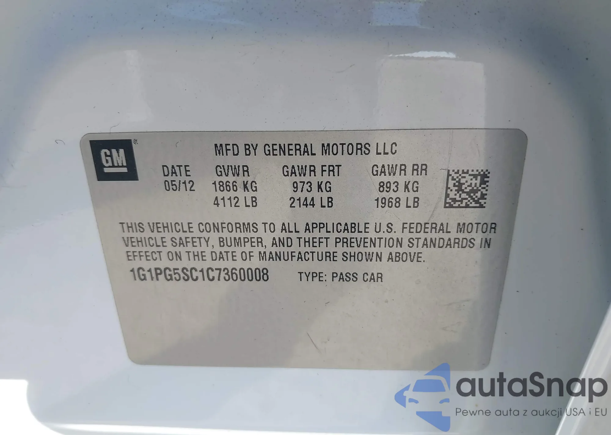 • VIN: 1G1PG5SC1C7360008