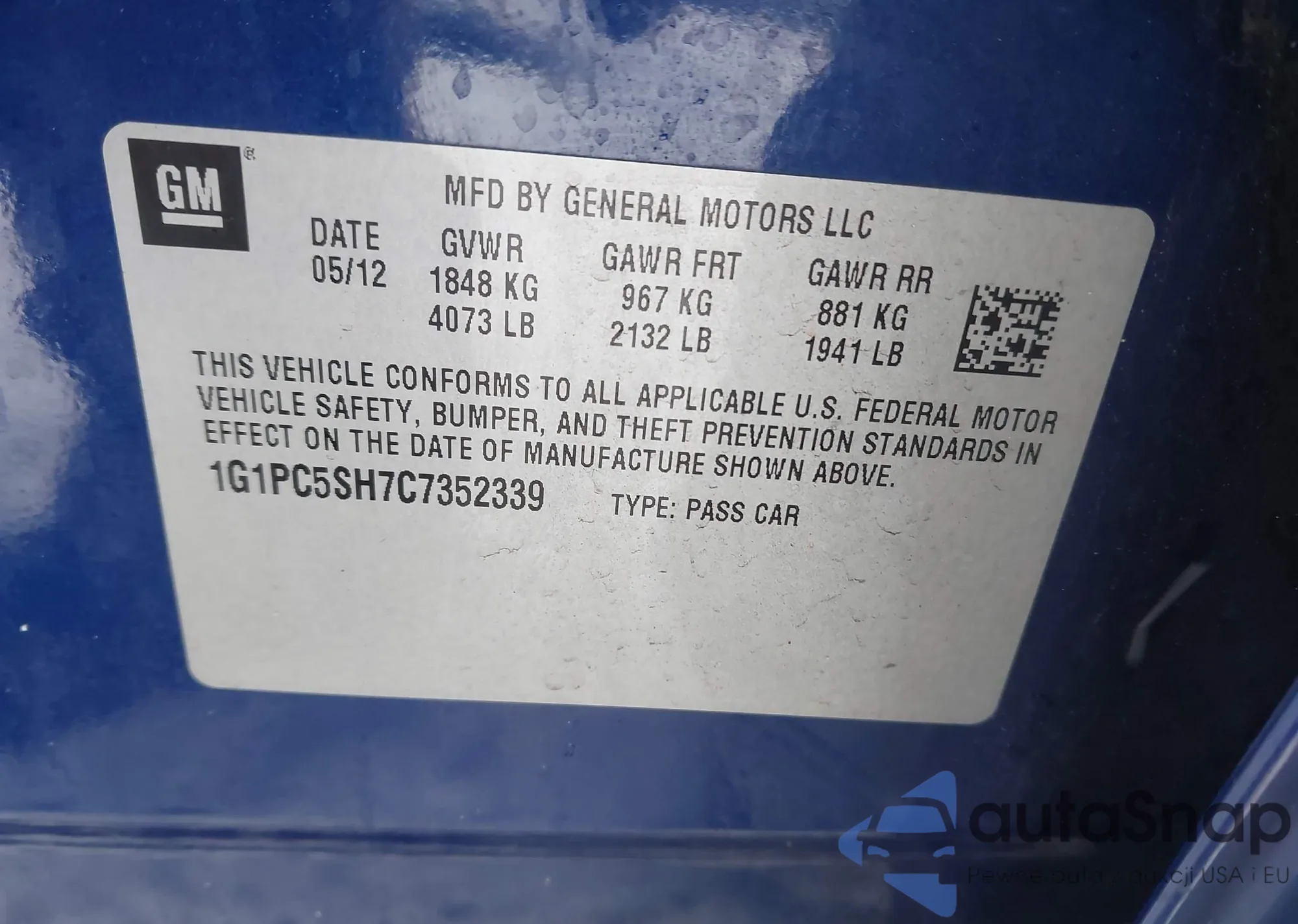 • VIN: 1G1PC5SH7C7352339