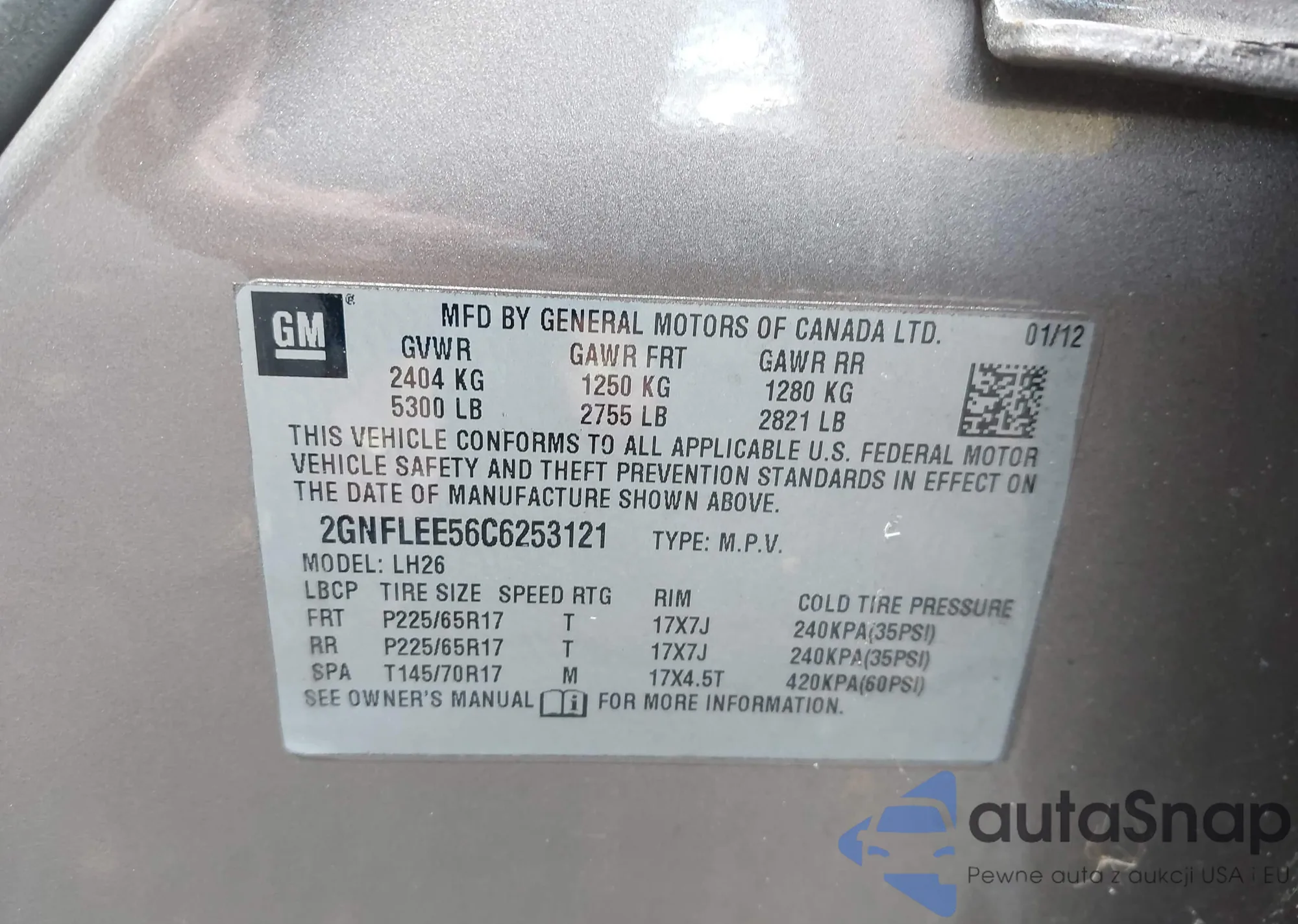 VIN: 2GNFLEE56C6253121