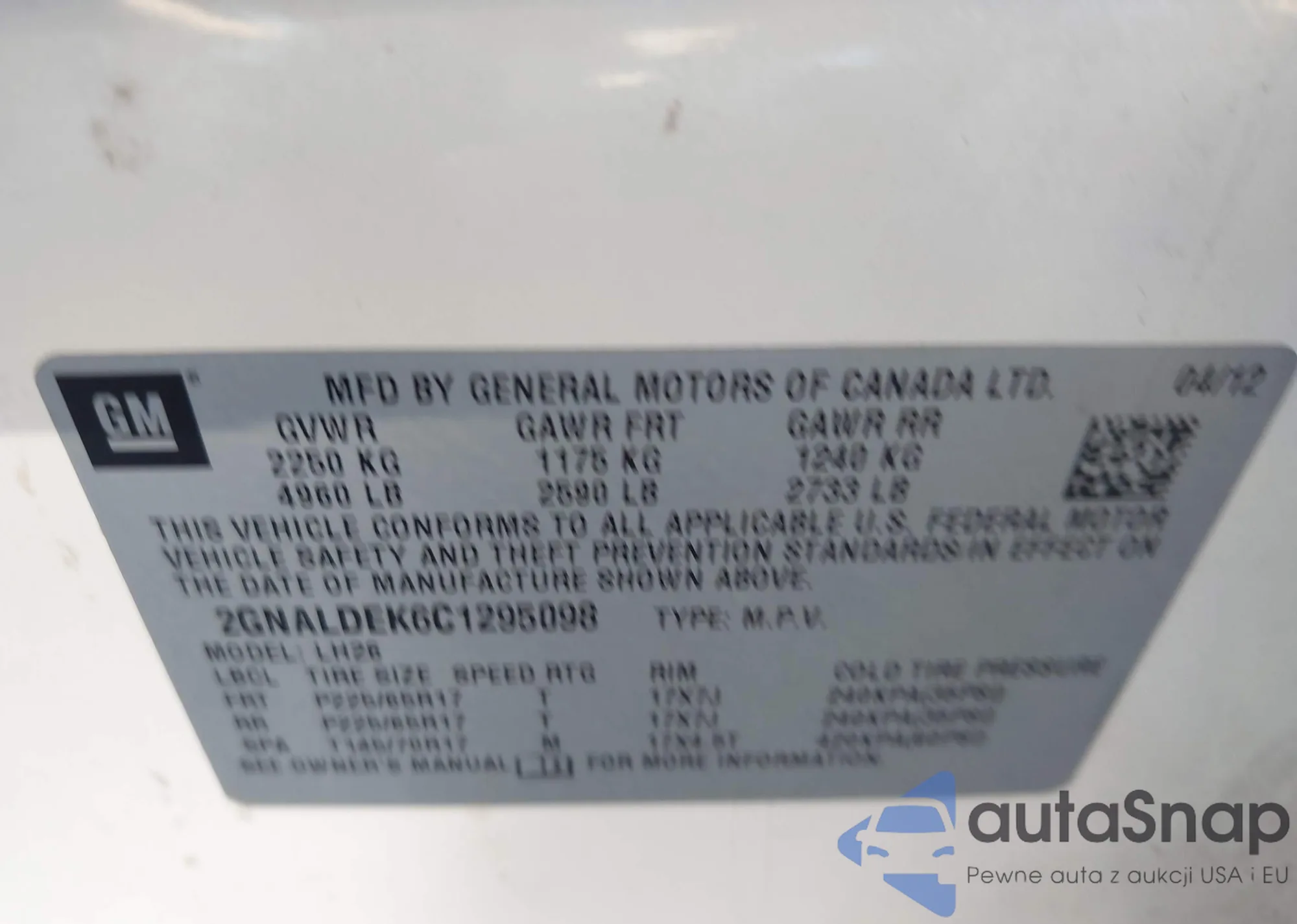 VIN: 2GNALDEK6C1295098