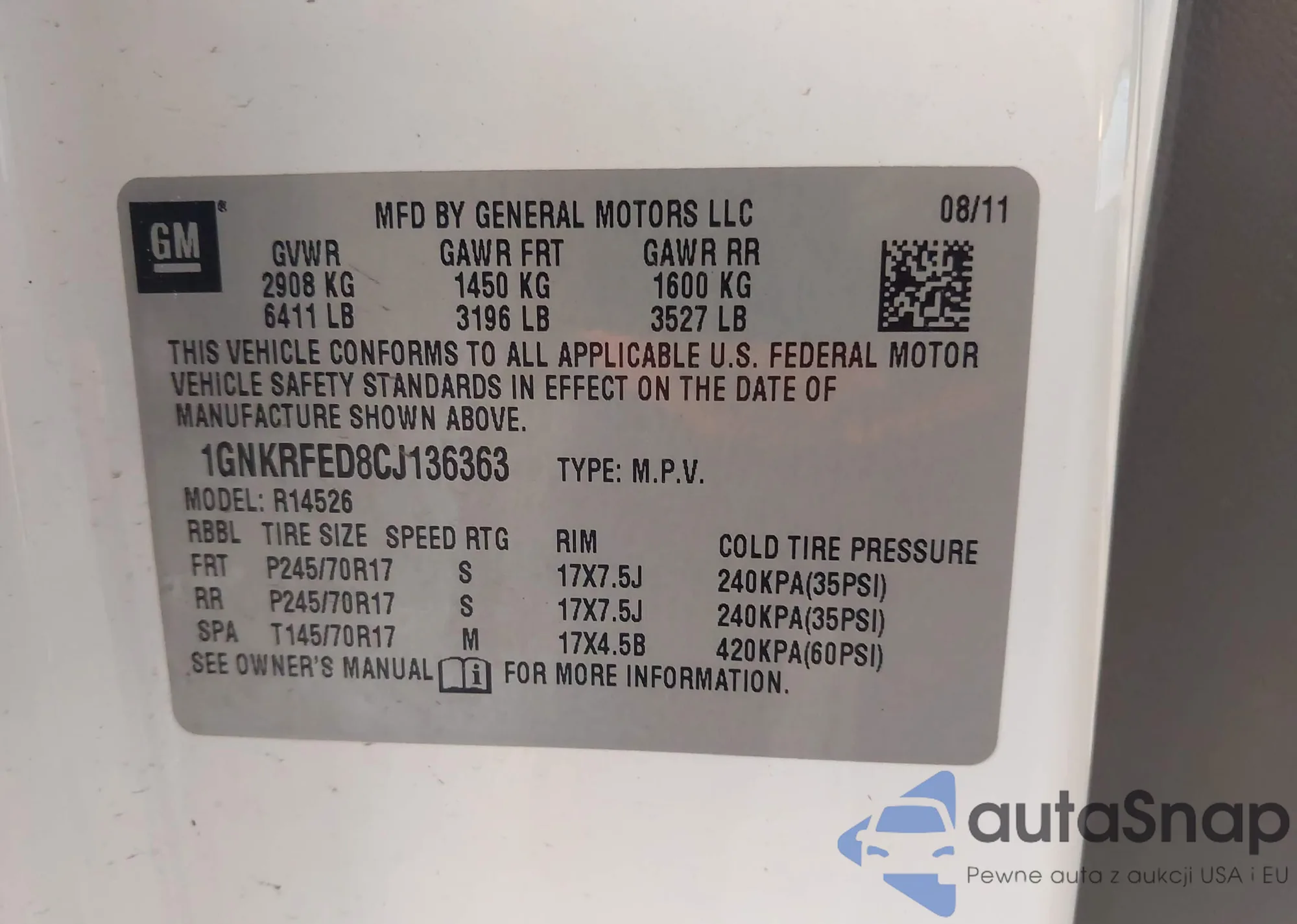 Samochód Chevrolet Traverse 2012 (VIN 1GNKRFED8CJ136363) nie był wcześniej licytowany. Dokumenty są czyste, przebieg odpowiada lub jest niższy niż średnia rynku. Sprzedaje go firma ubezpieczeniowa – polecamy zakup. Dostawa do portu zajmie ok. 6–8 tygodni.