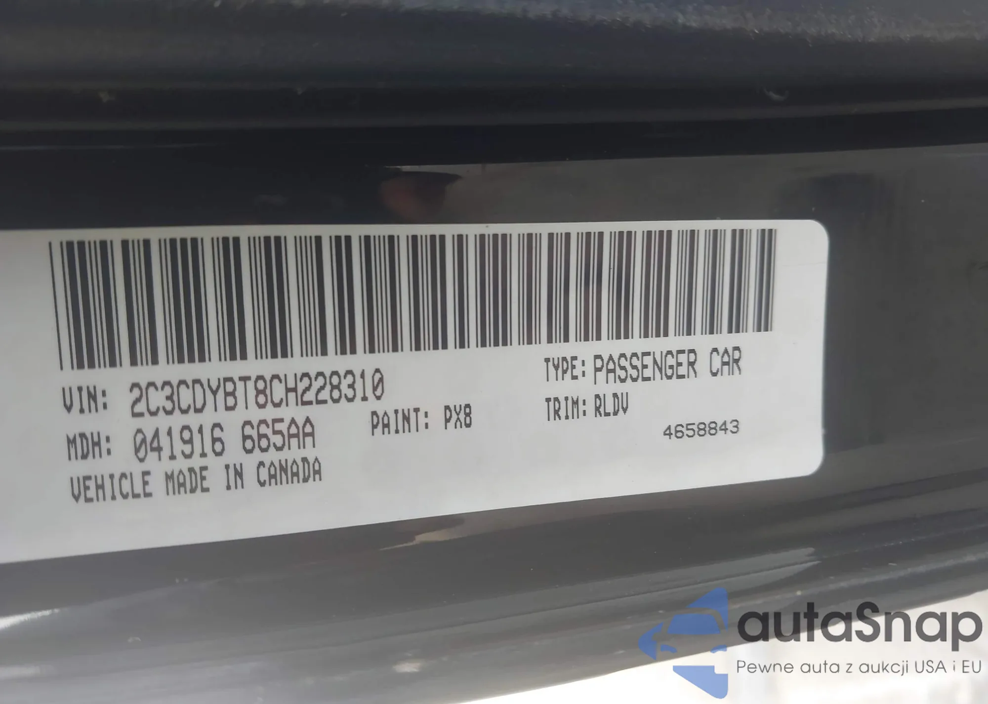 • VIN: 2C3CDYBT8CH228310