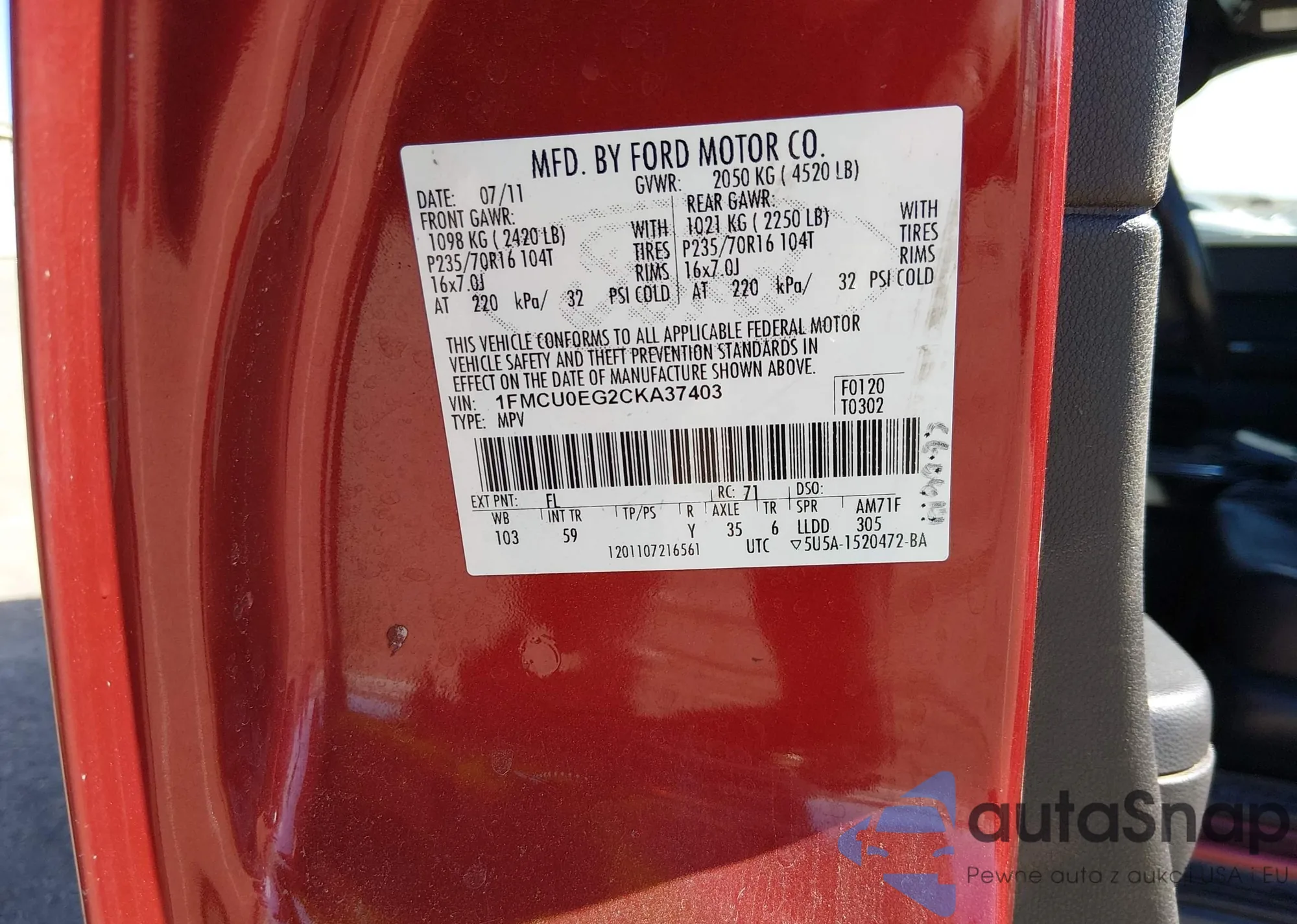 VIN: 1FMCU0EG2CKA37403