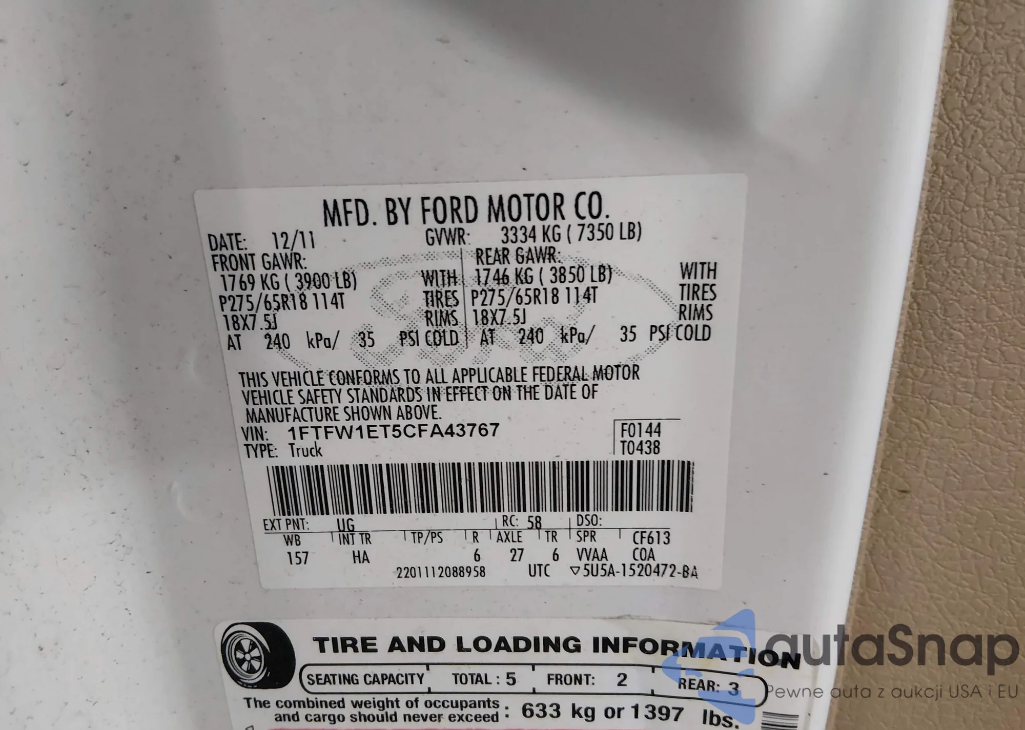 VIN: 1FTFW1ET5CFA43767