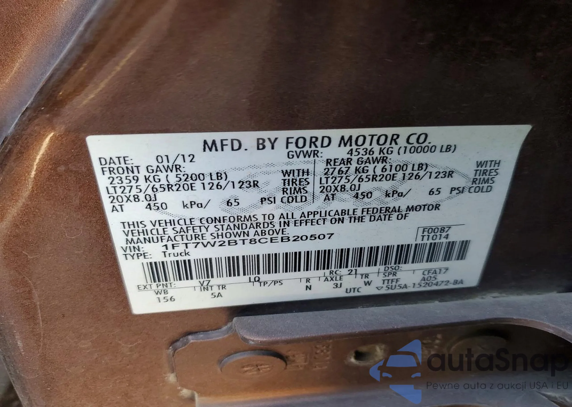 • VIN: 1FT7W2BT8CEB20507