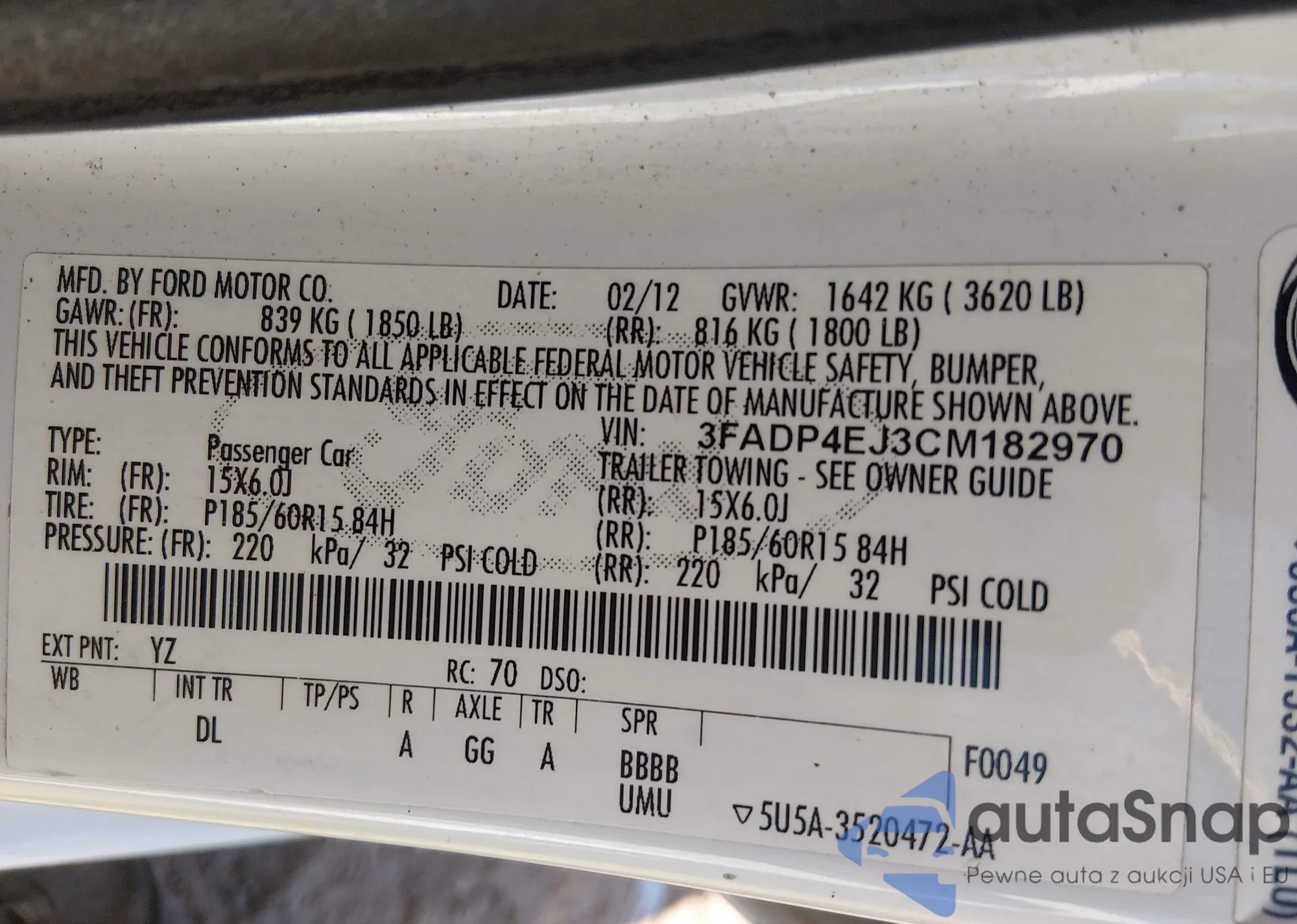• VIN: 3FADP4EJ3CM182970