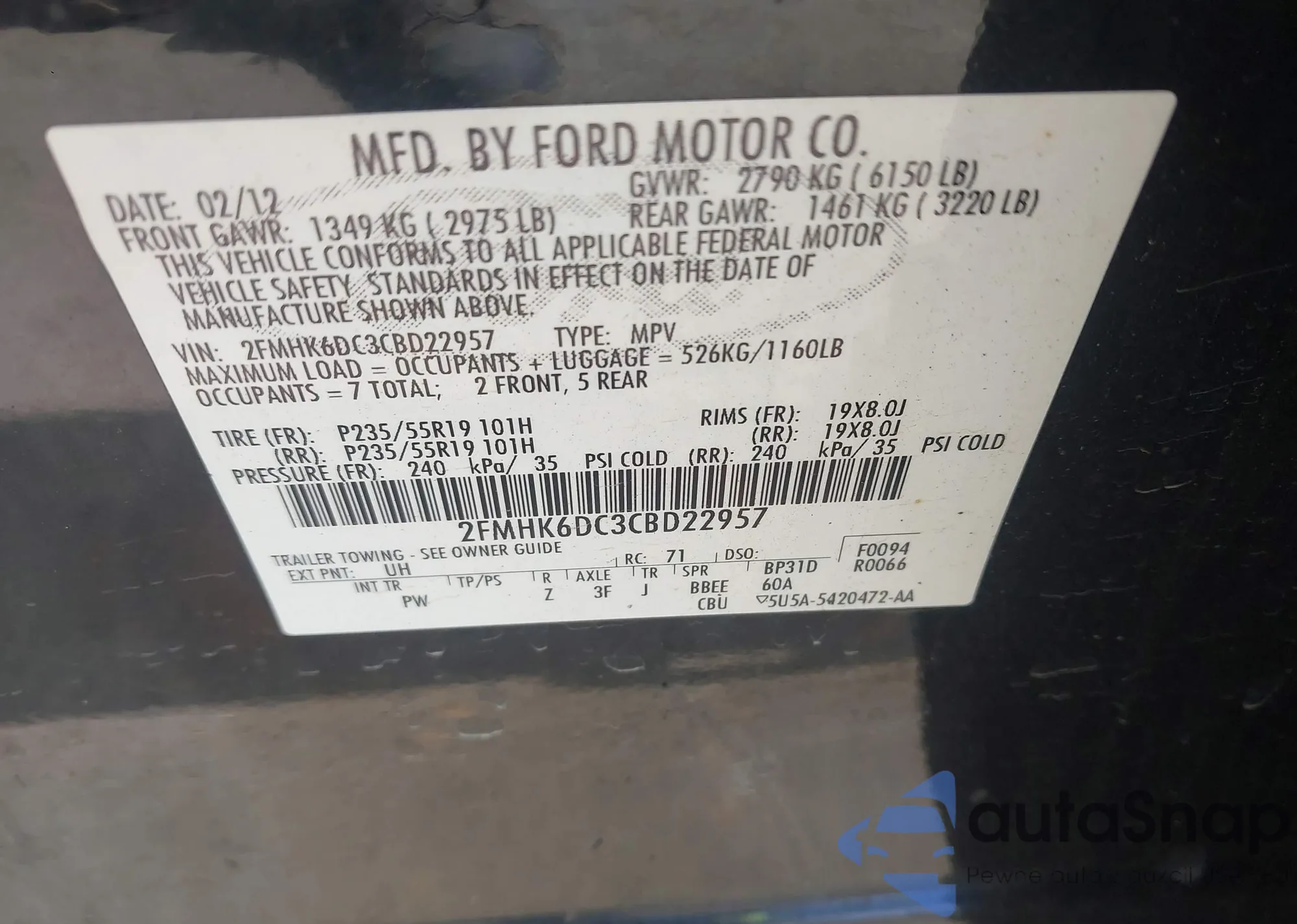 • VIN: 2FMHK6DC3CBD22957