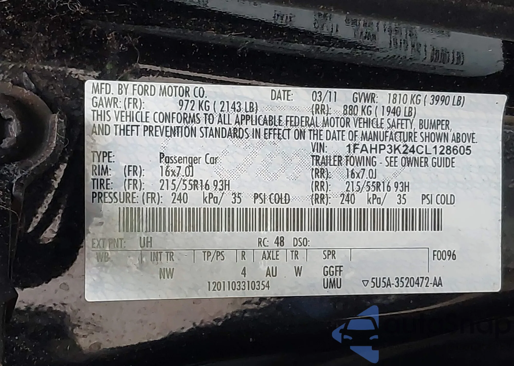 • VIN: 1FAHP3K24CL128605