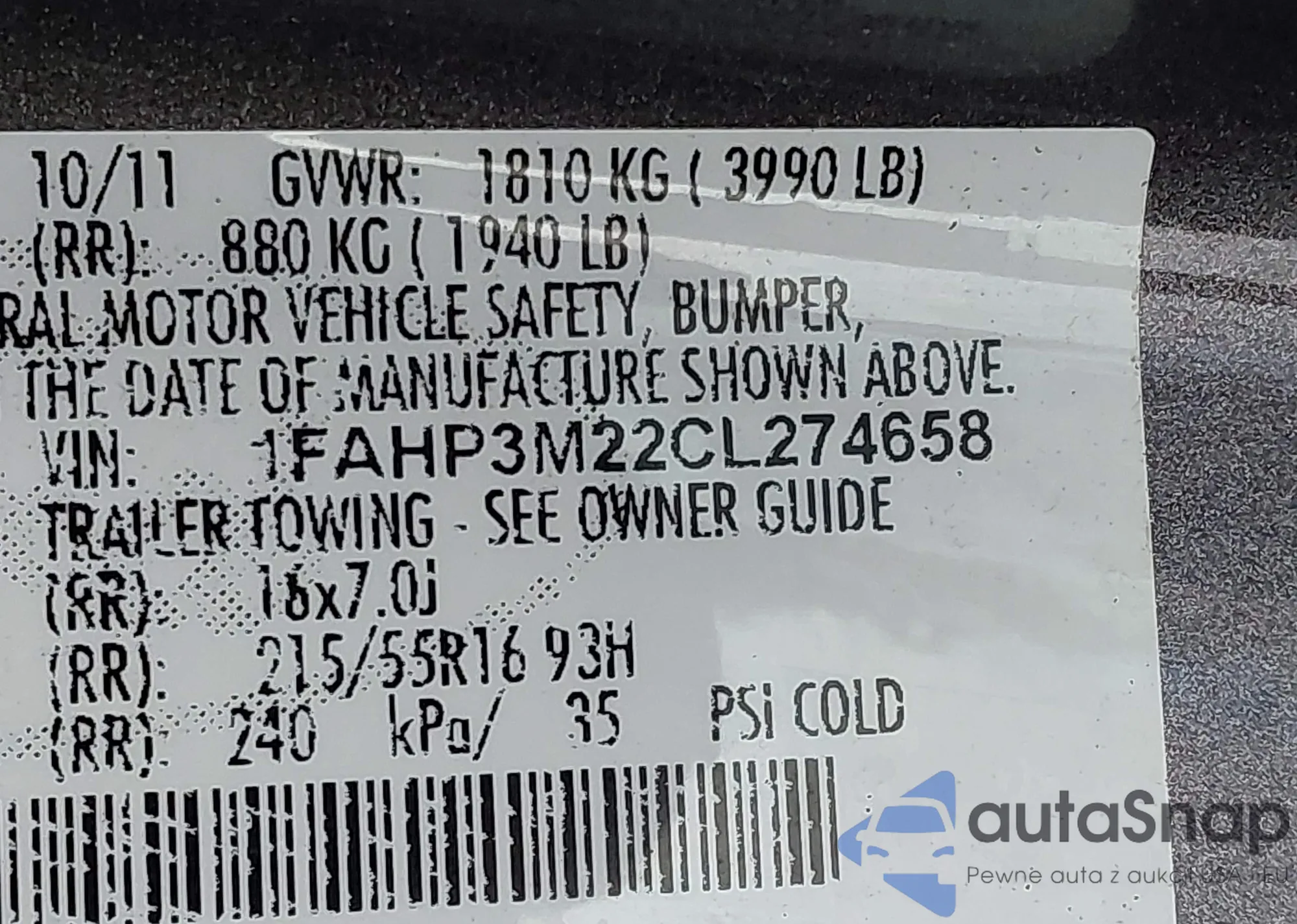 VIN: 1FAHP3M22CL274658