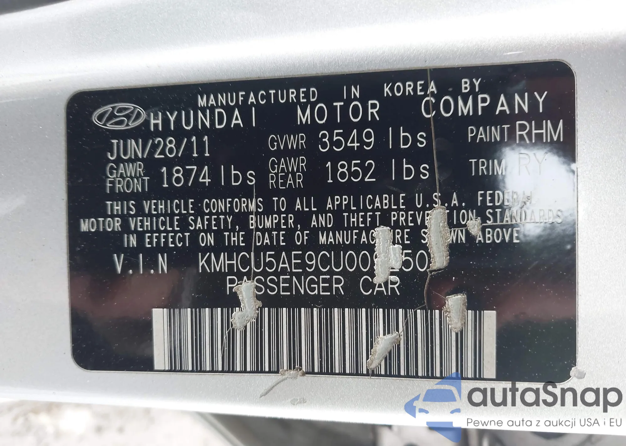 VIN: KMHCU5AE9CU009250