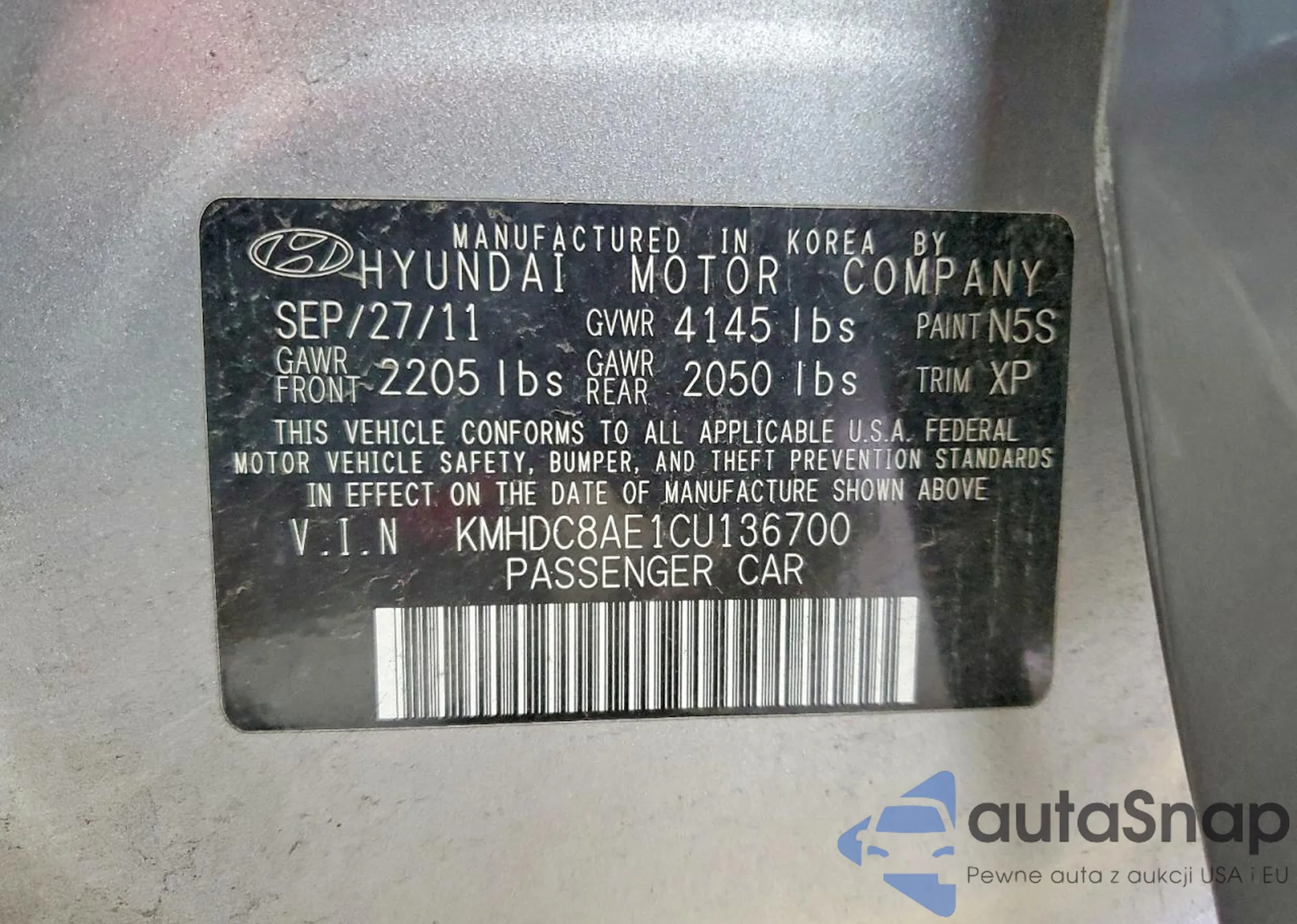 VIN: KMHDC8AE1CU136700