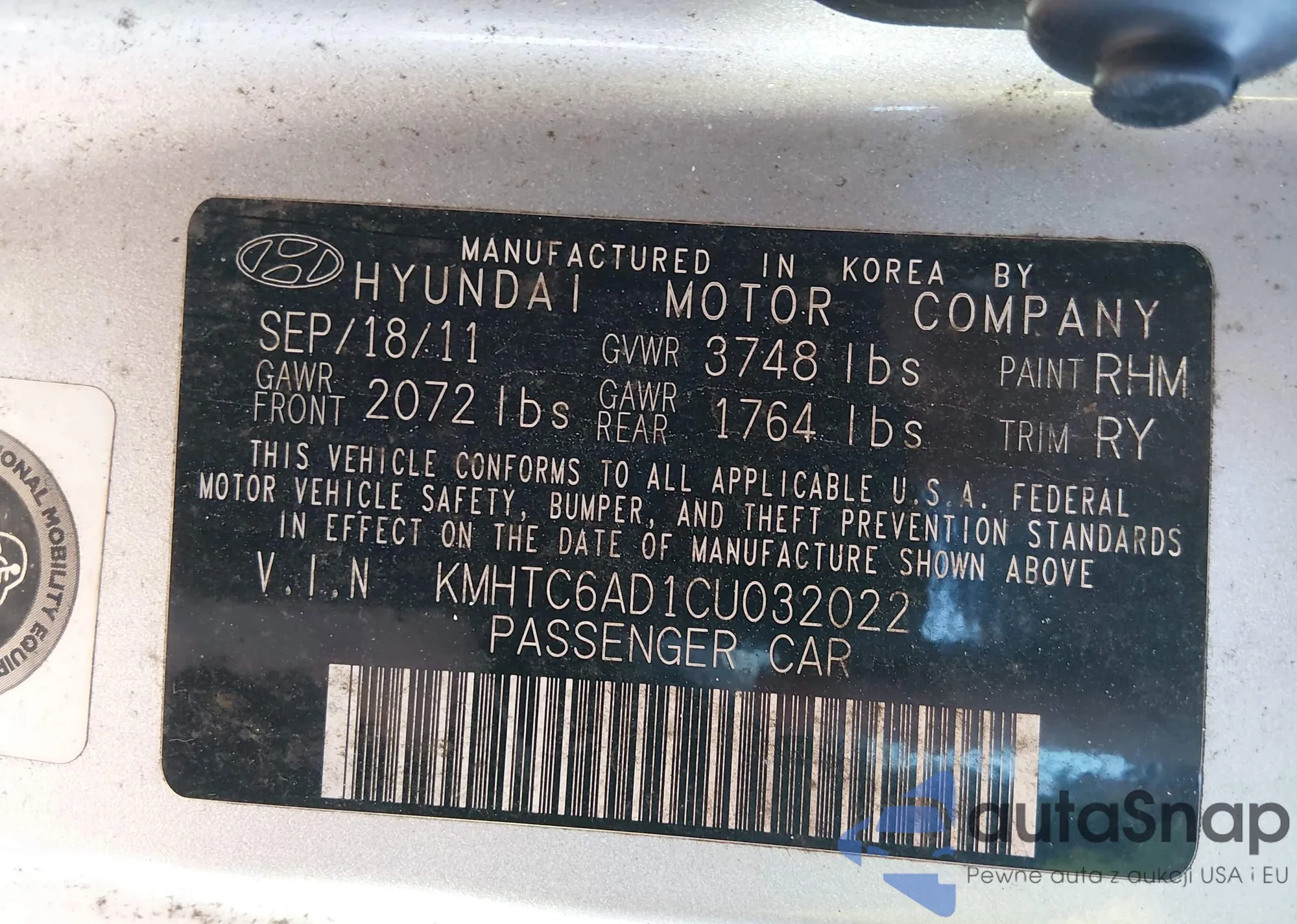 • VIN: KMHTC6AD1CU032022