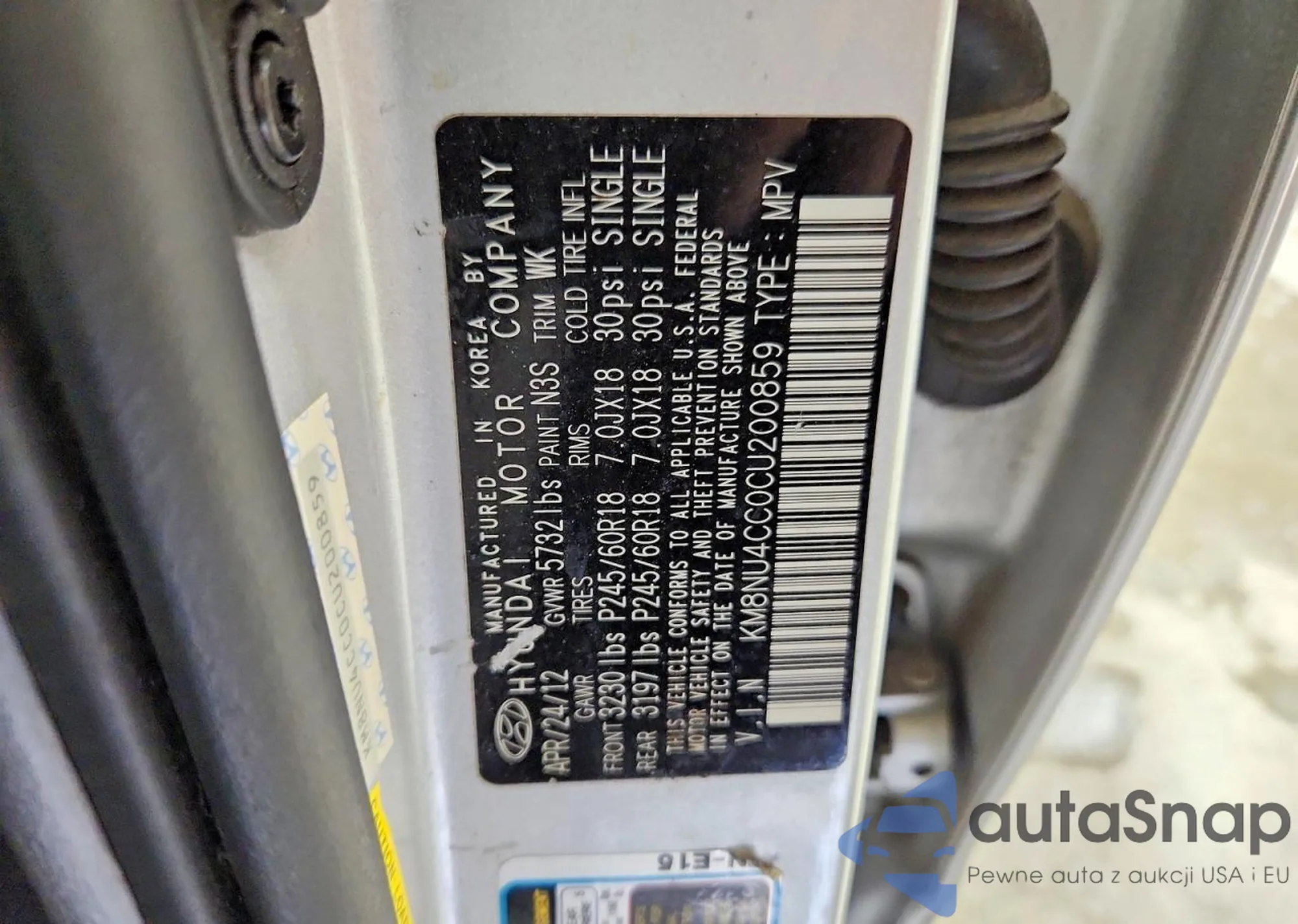 VIN: KM8NU4CC0CU200859