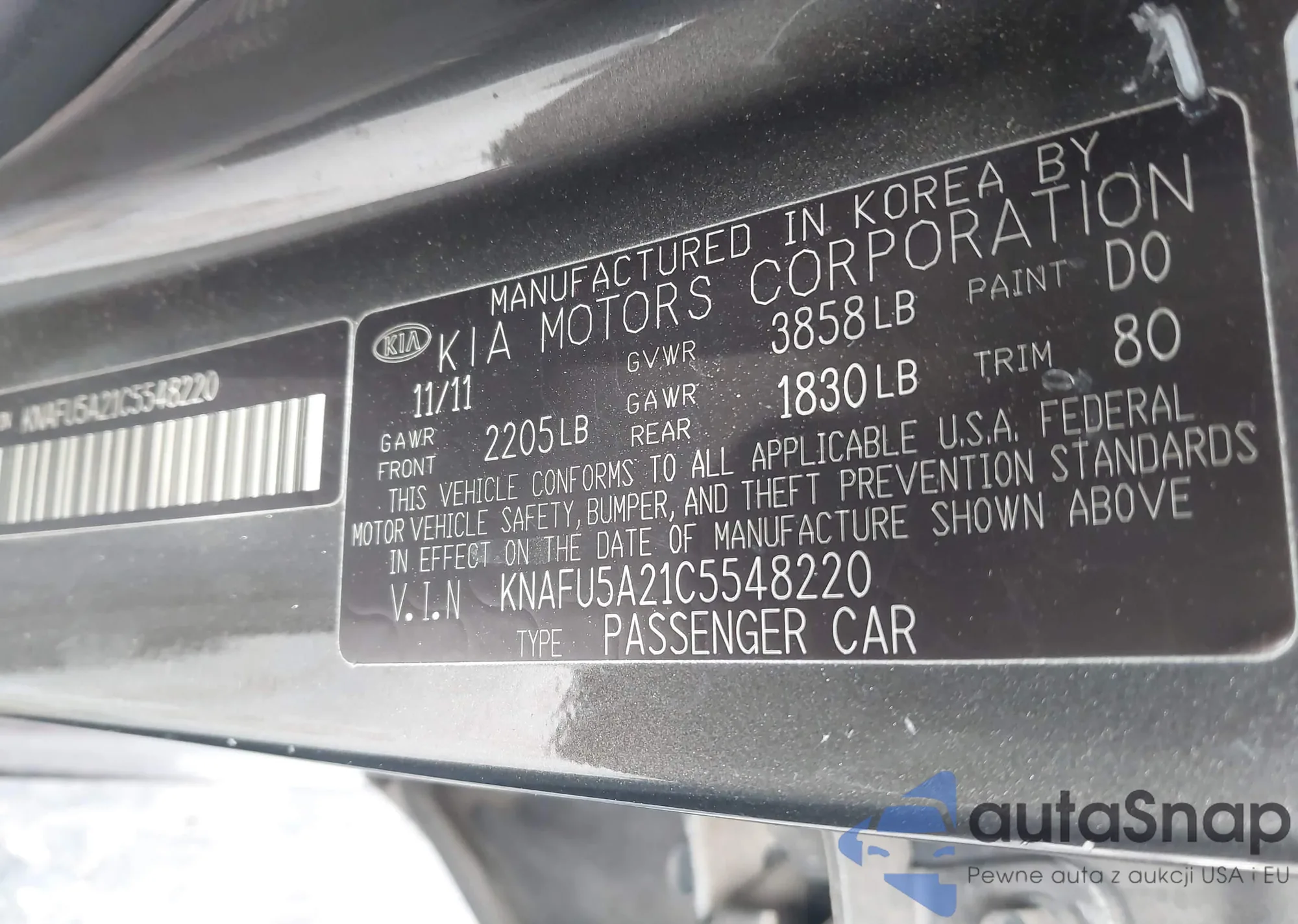 Samochód Kia Forte 2012 (VIN KNAFU5A21C5548220) nie był wcześniej licytowany. Dokumenty są czyste, przebieg odpowiada lub jest niższy niż średnia rynku. Sprzedaje go firma ubezpieczeniowa – polecamy zakup. Dostawa do portu zajmie ok. 6–8 tygodni.