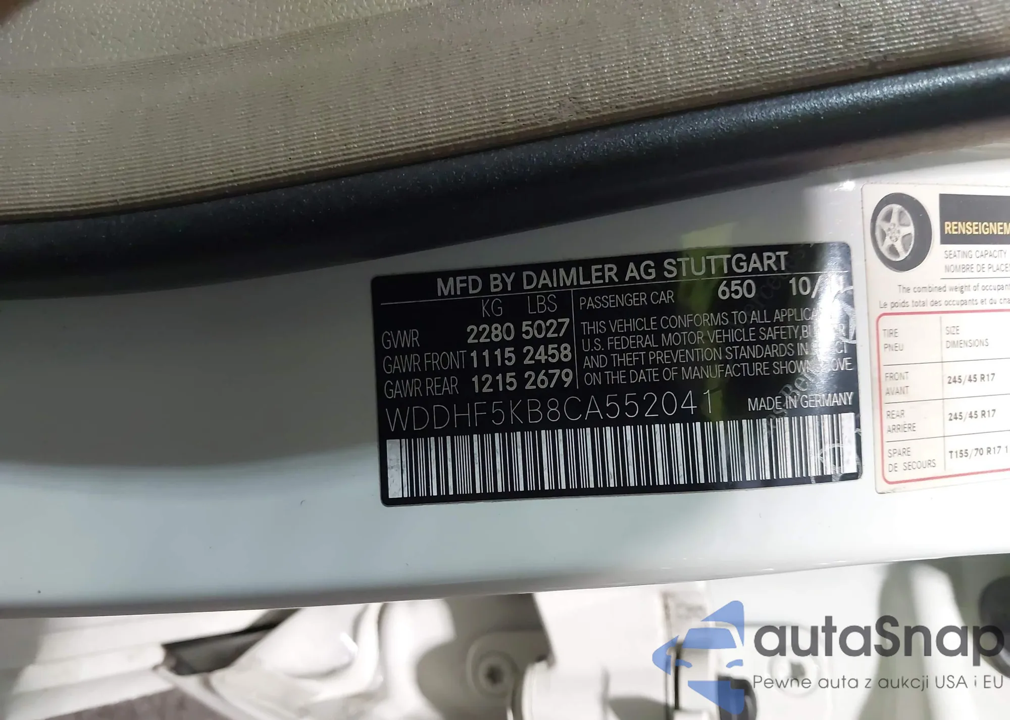 • VIN: WDDHF5KB8CA552041