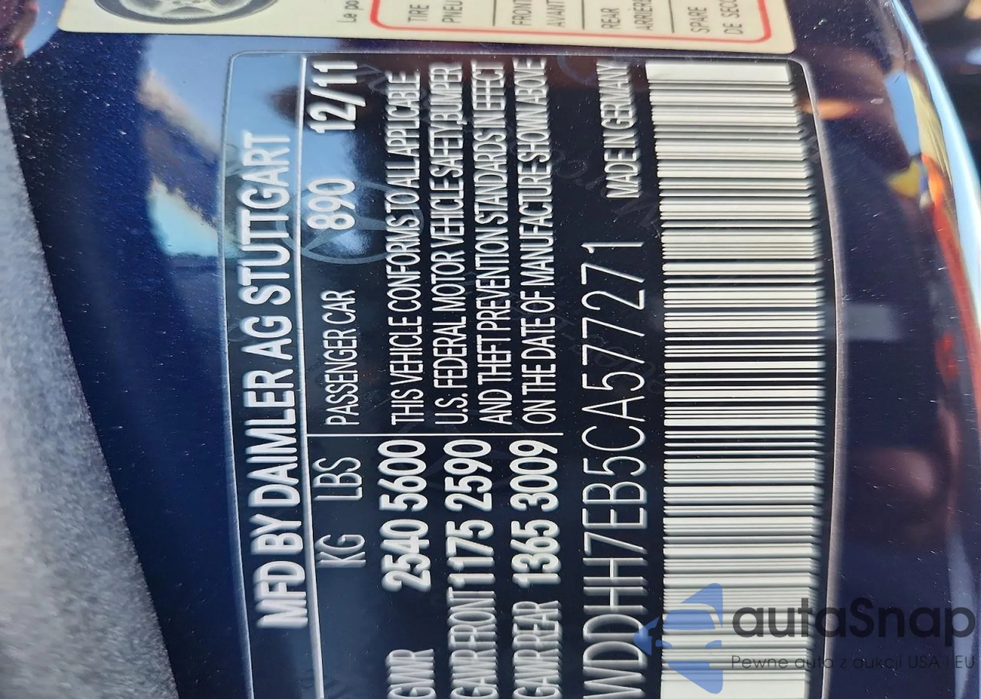 • VIN: WDDHH7EB5CA577271